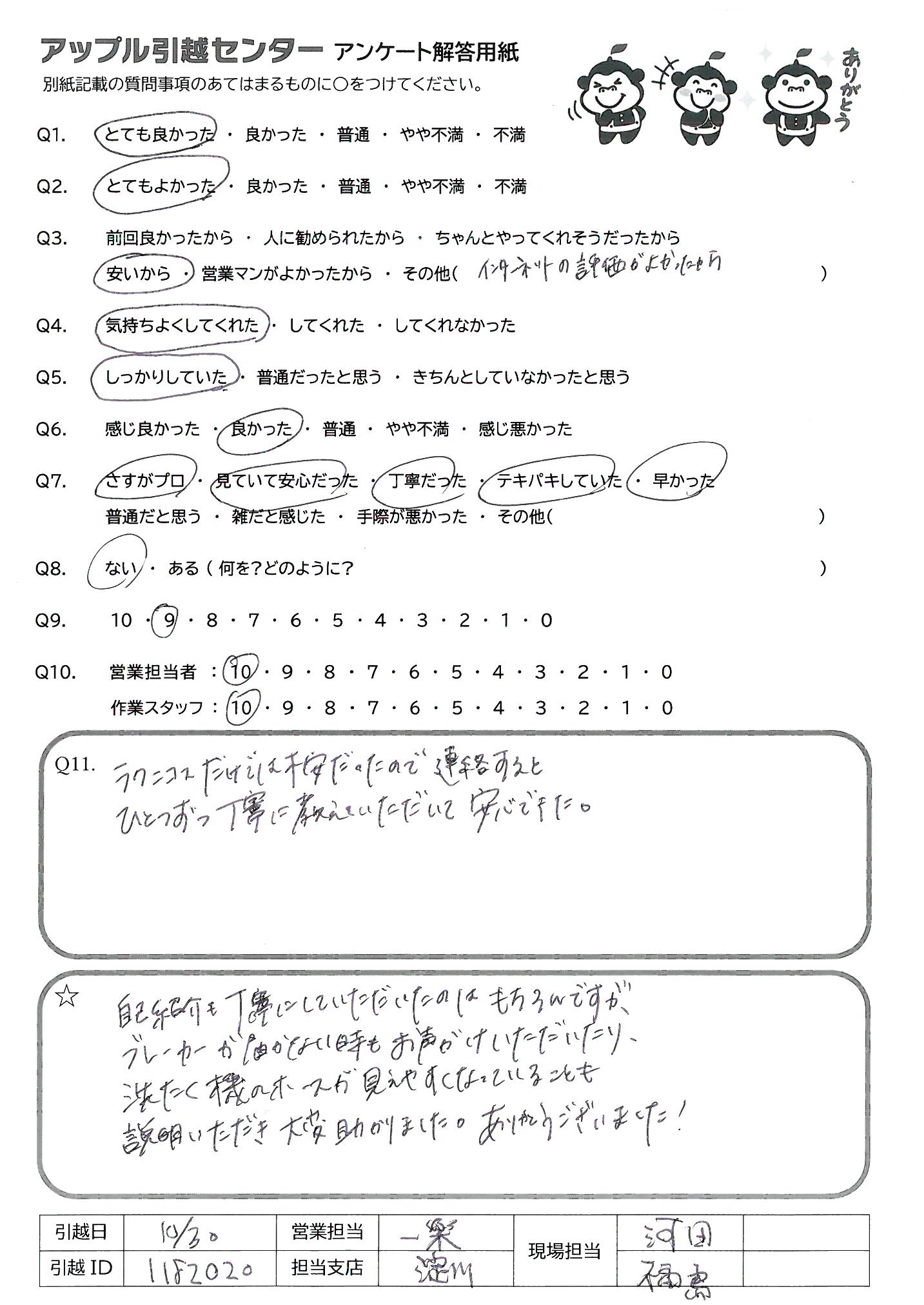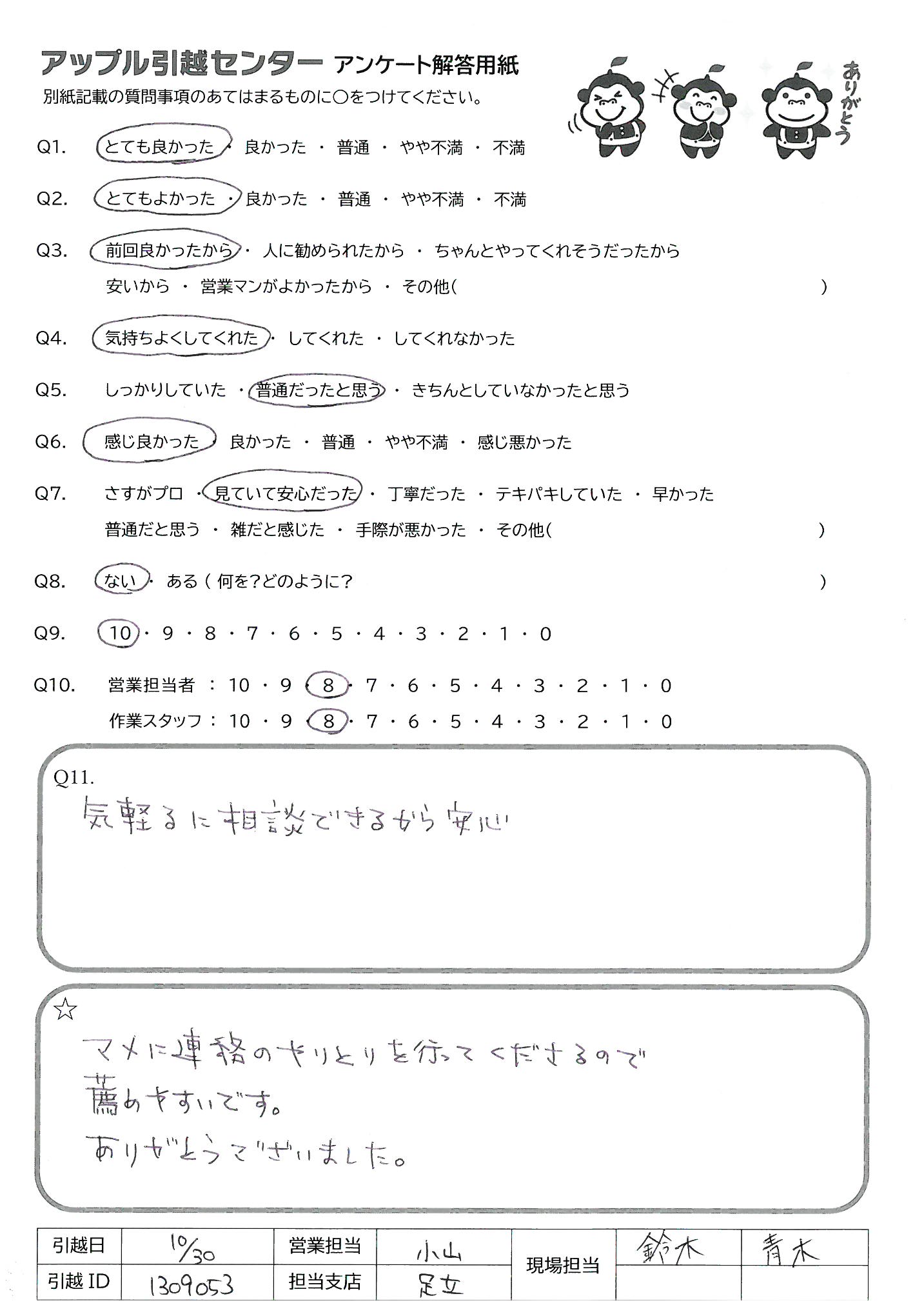 A.気持ちよく引越し出来ました。ありがとうございました。