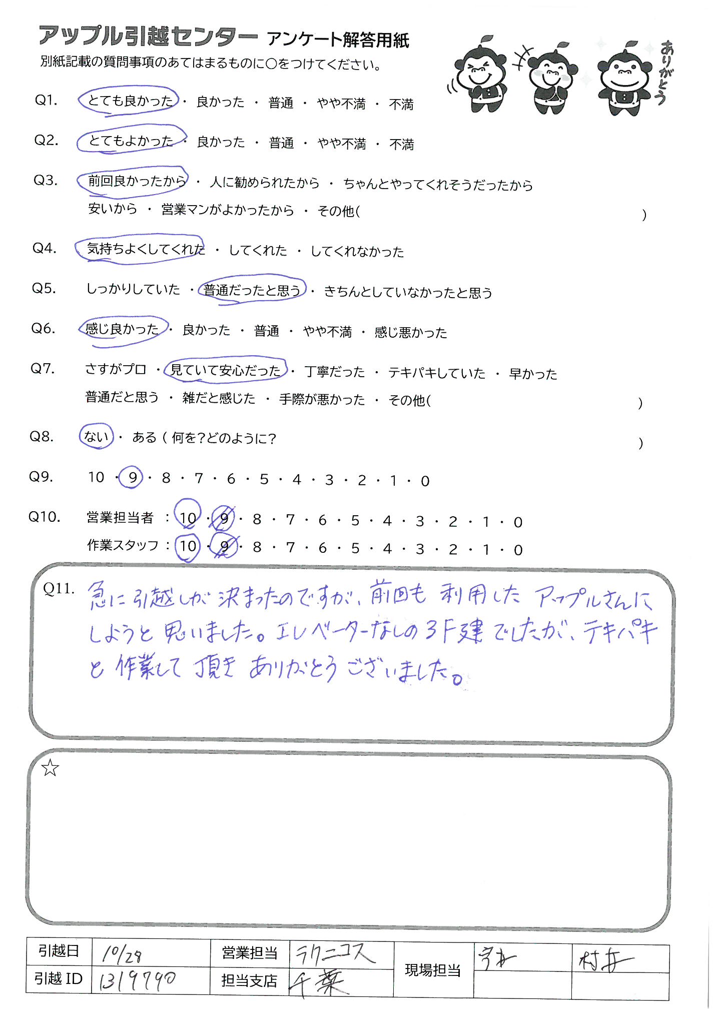 アップル引越センターでは、面映いお褒めの言葉も、胸に突き刺さるお叱りのコメントも、