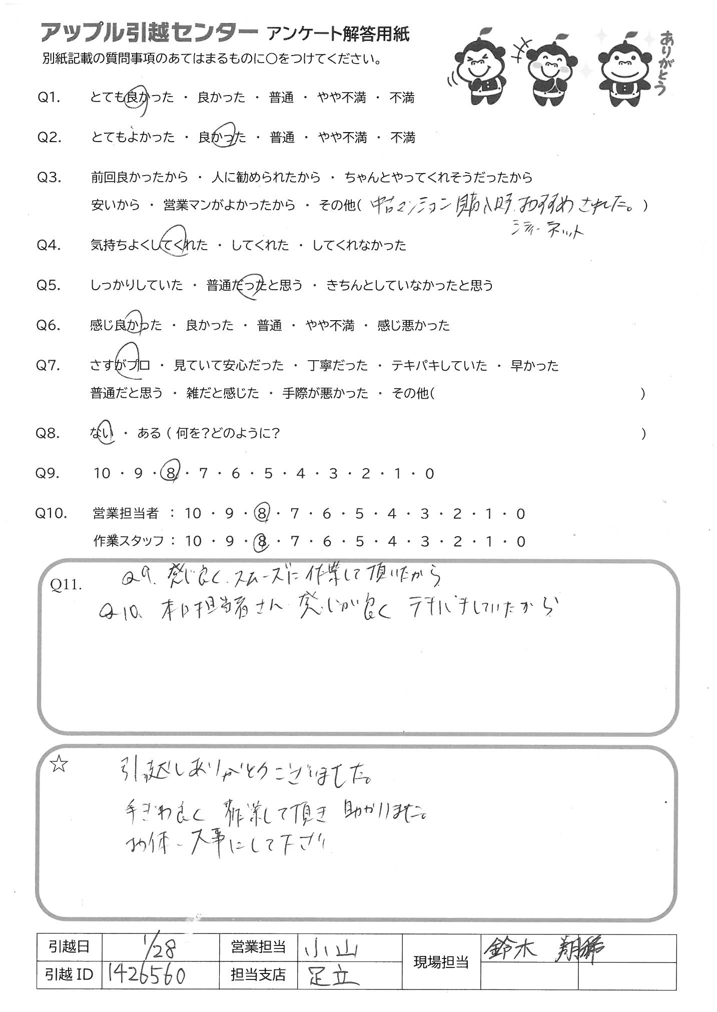 引越し日:2022年01月28日 エリア:東京都足立区