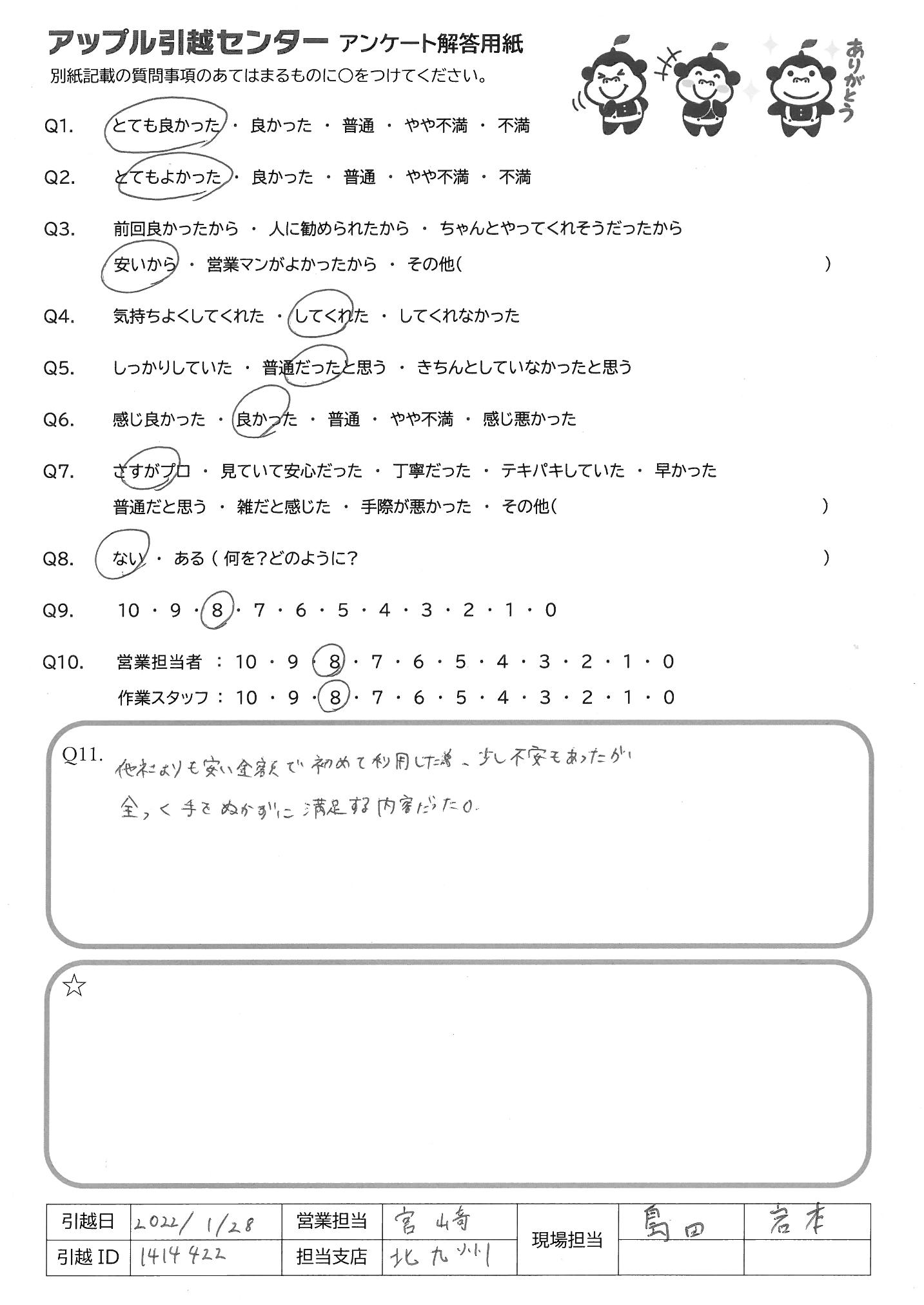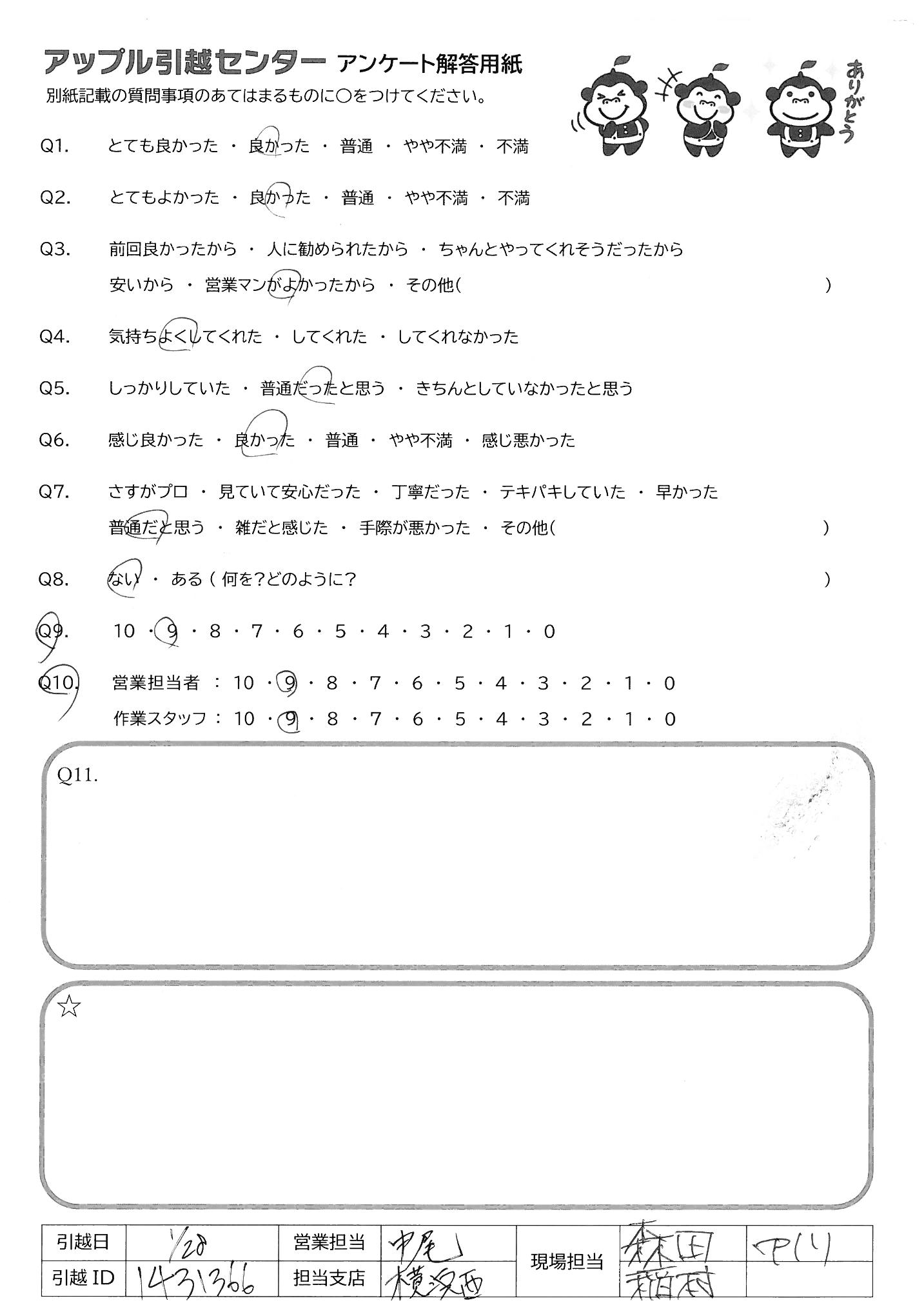 A.ありがとうございました! また引越しをする際には、ぜひお願いしたいです。