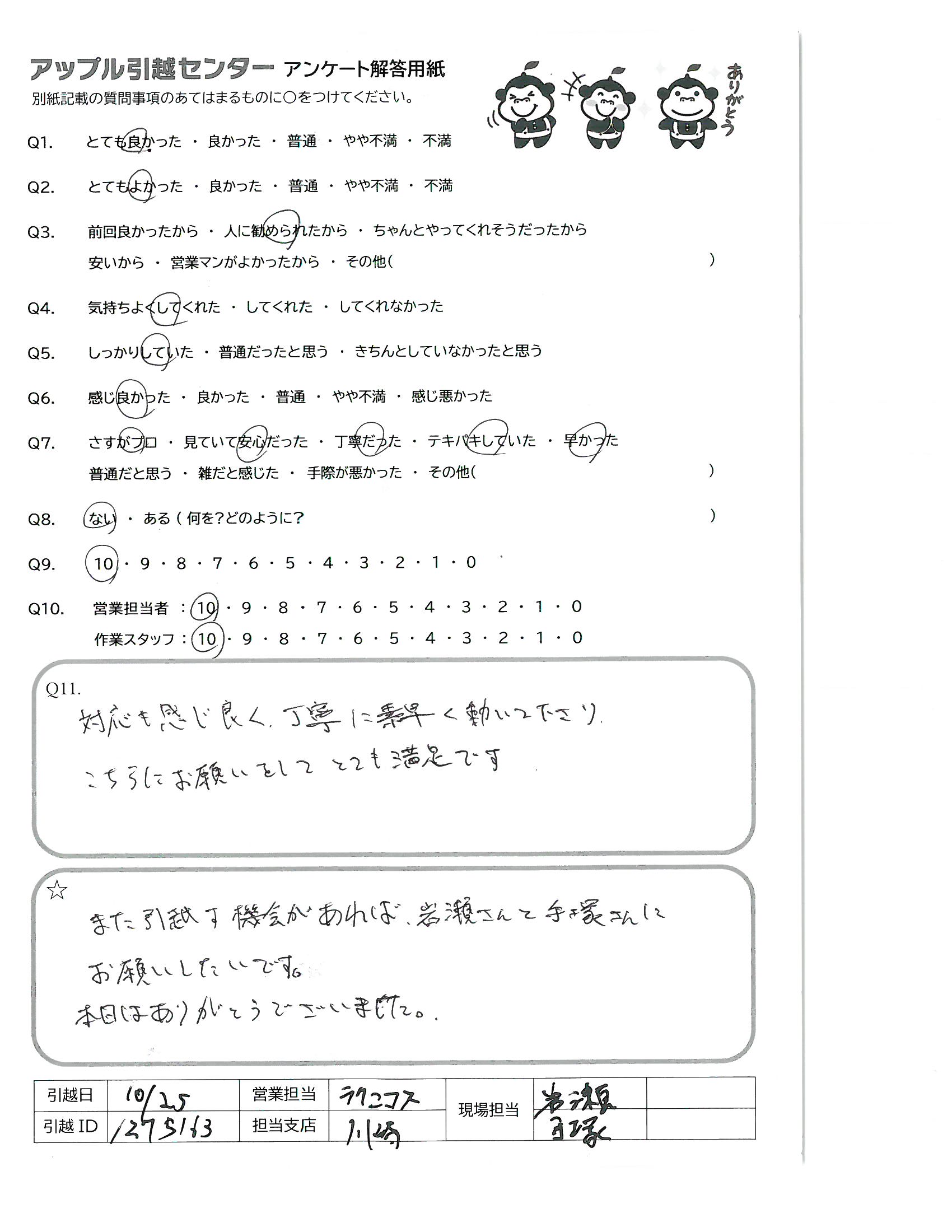 A.また引越す機会があれば、岩瀬さんと手塚さんにお願いしたいです。 本日はありがとうございました。