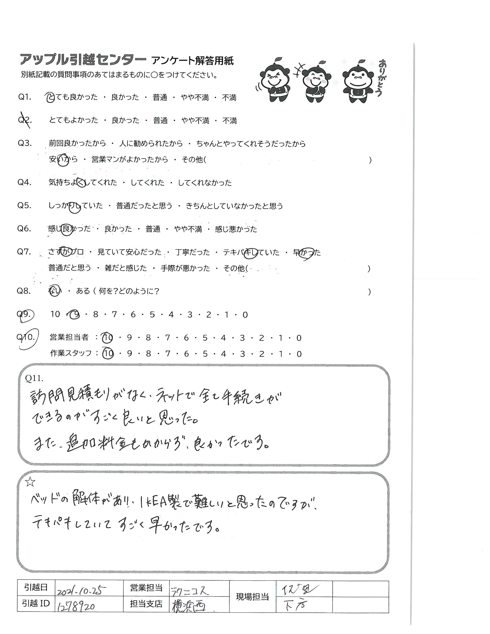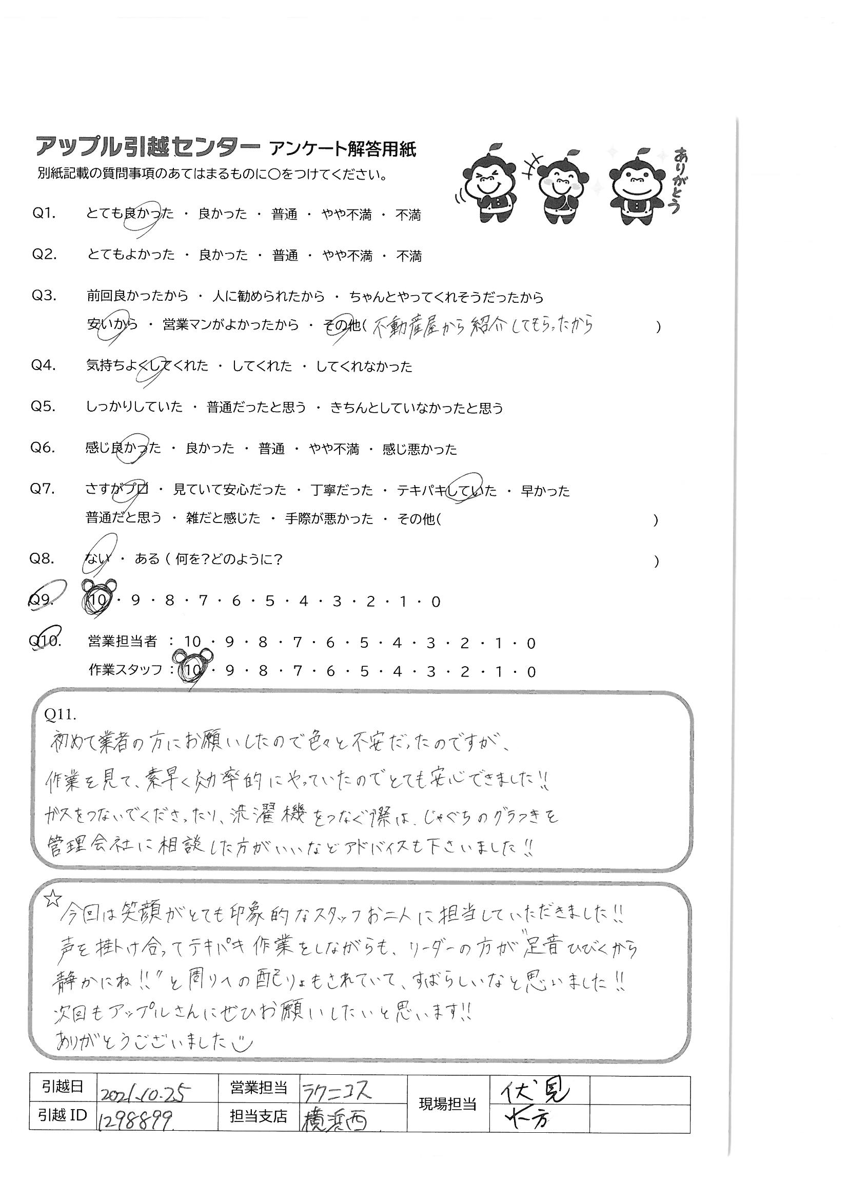 引越し日:2021年10月25日 エリア:神奈川県横浜市神奈川区