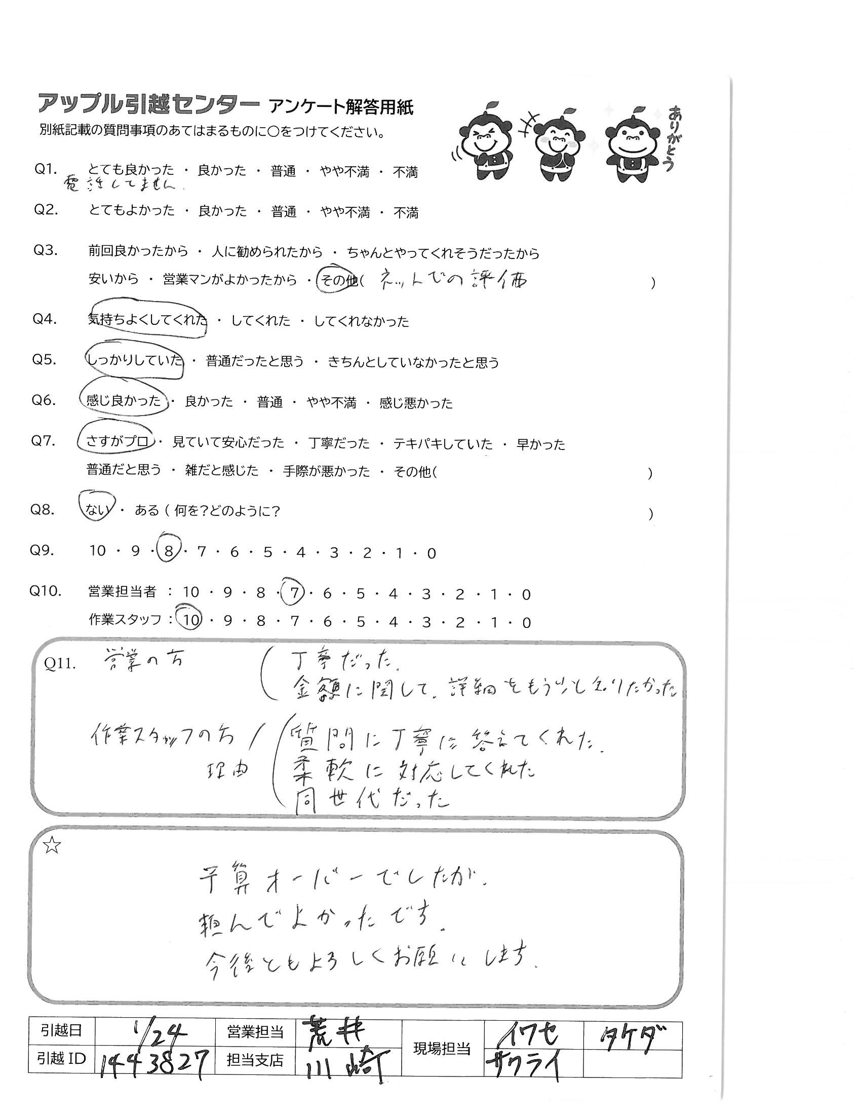 引越し日:2022年01月24日 エリア:神奈川県川崎市麻生区