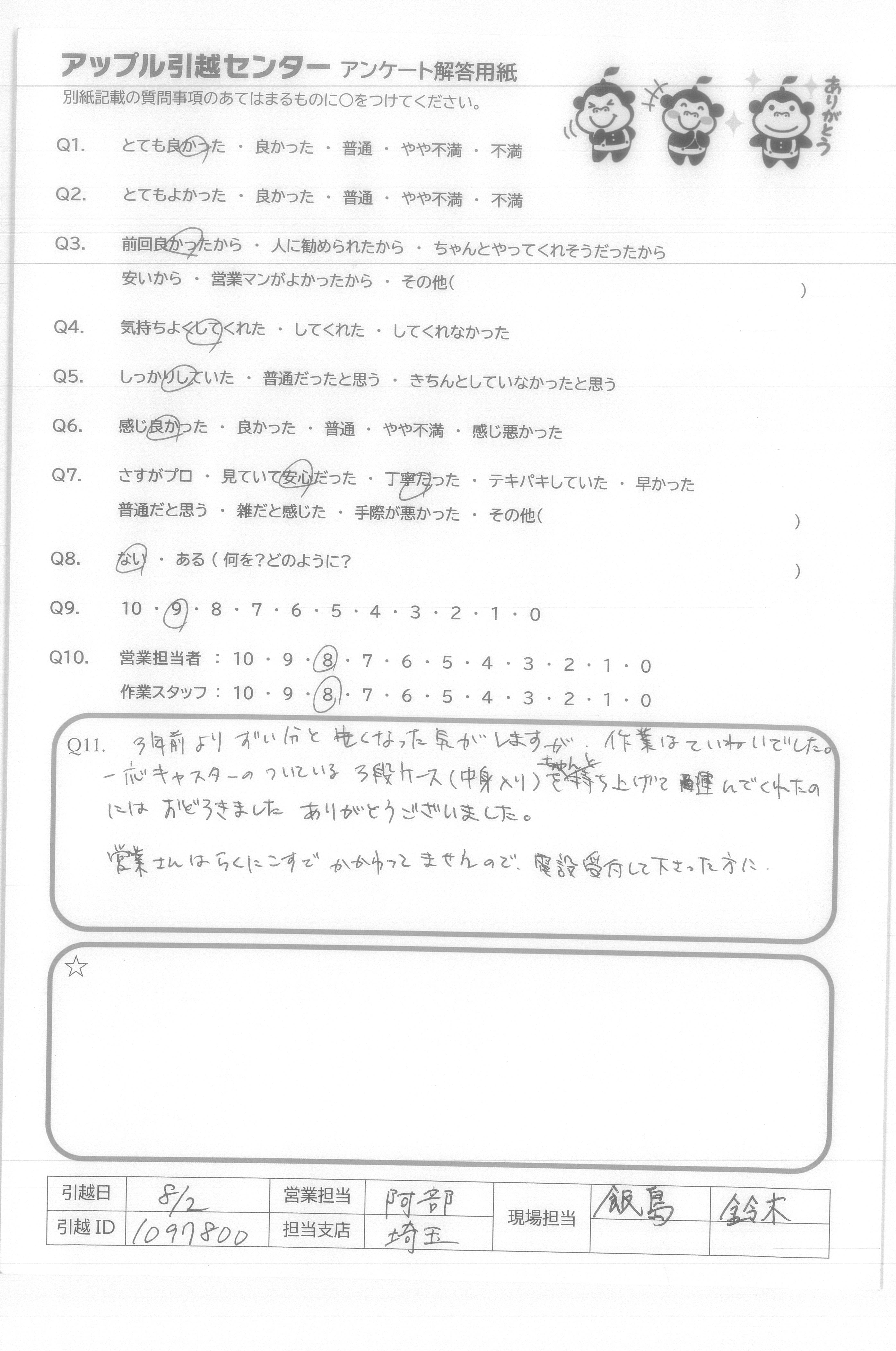 引越し日:2021年08月03日 エリア:埼玉県川口市