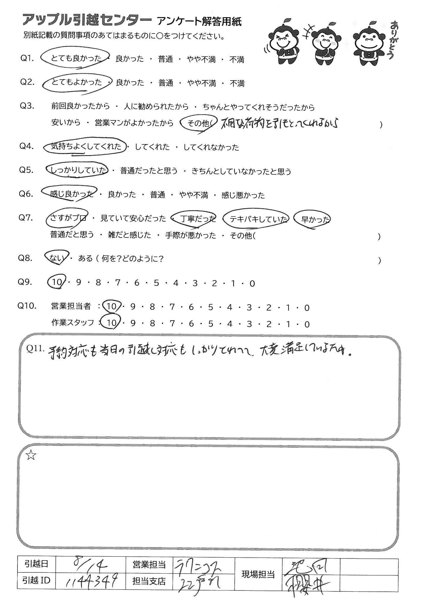 A.本当にありがとうございました! 次回の引越しも是非よろしくお願いします!