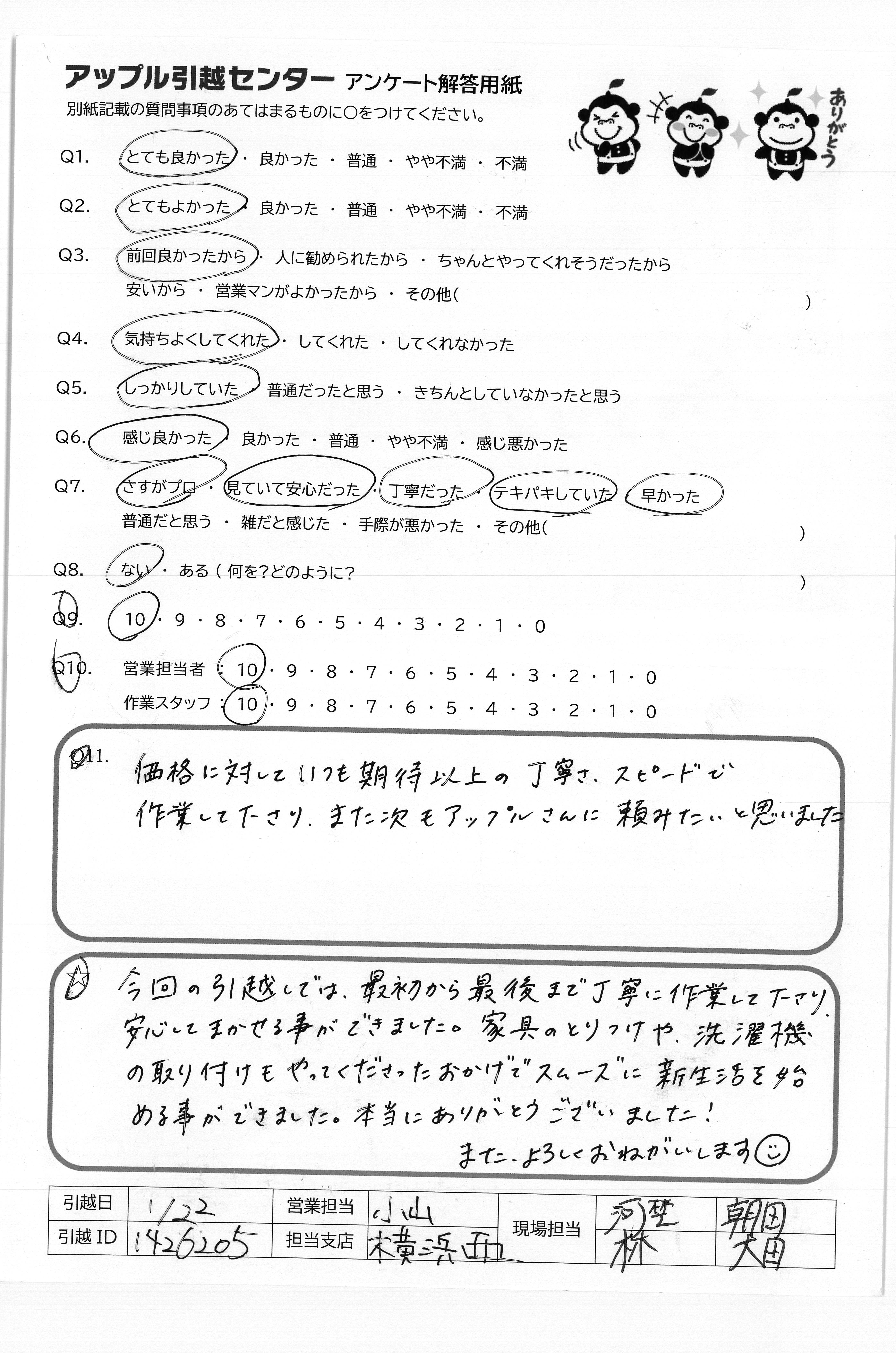 引越し日:2022年01月22日 エリア:神奈川県横浜市西区