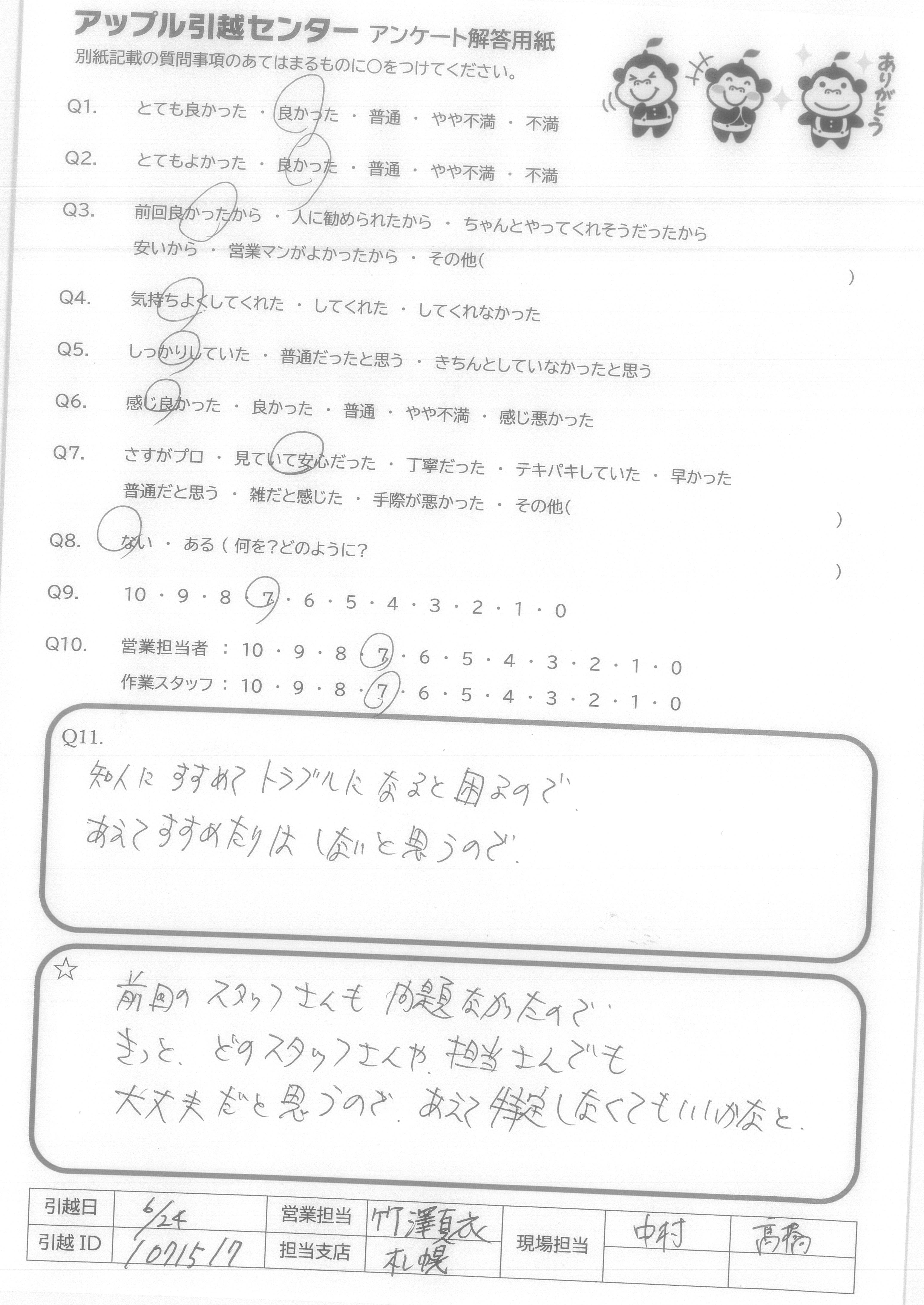 引越し日:2021年06月24日 エリア:北海道札幌市西区