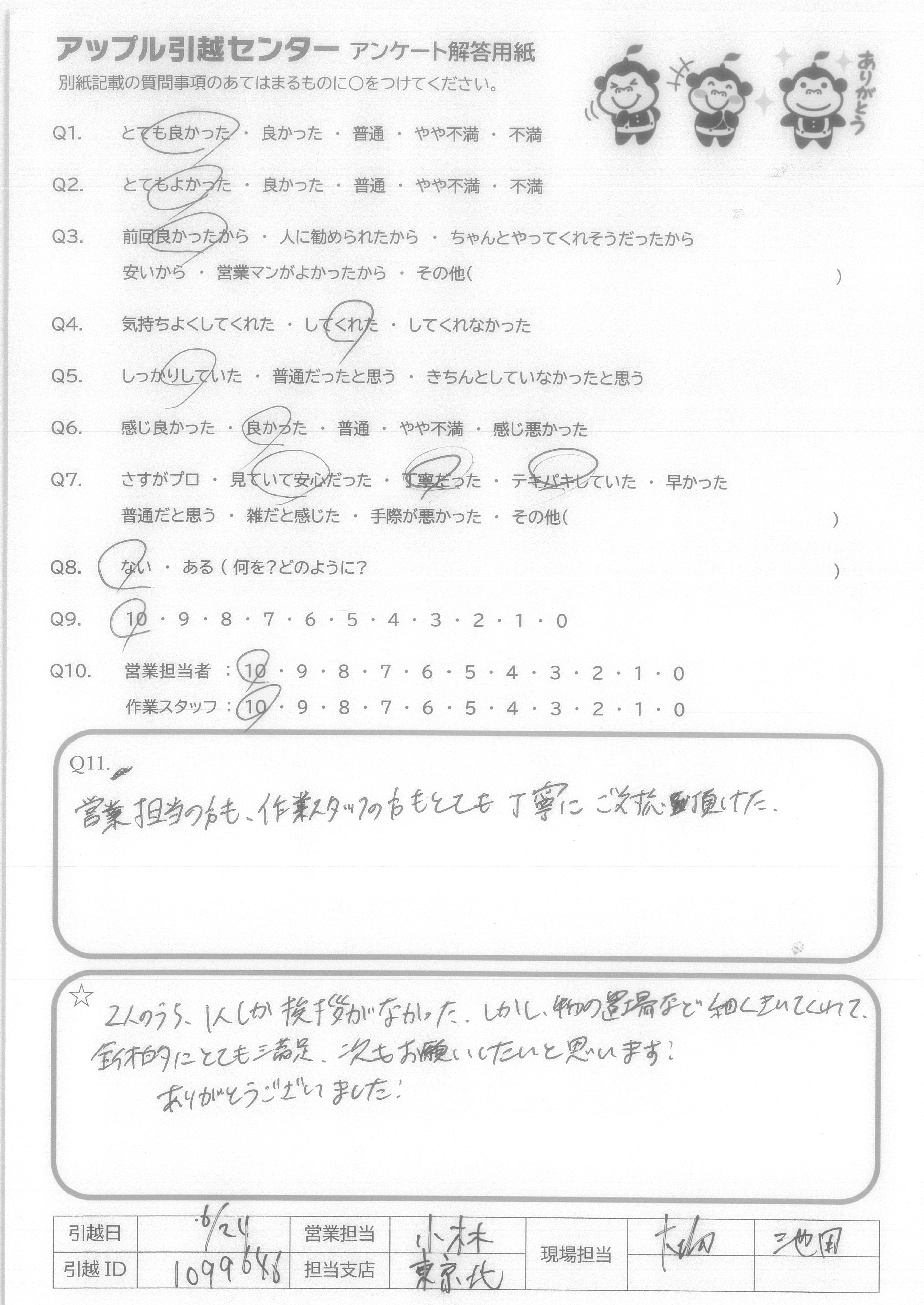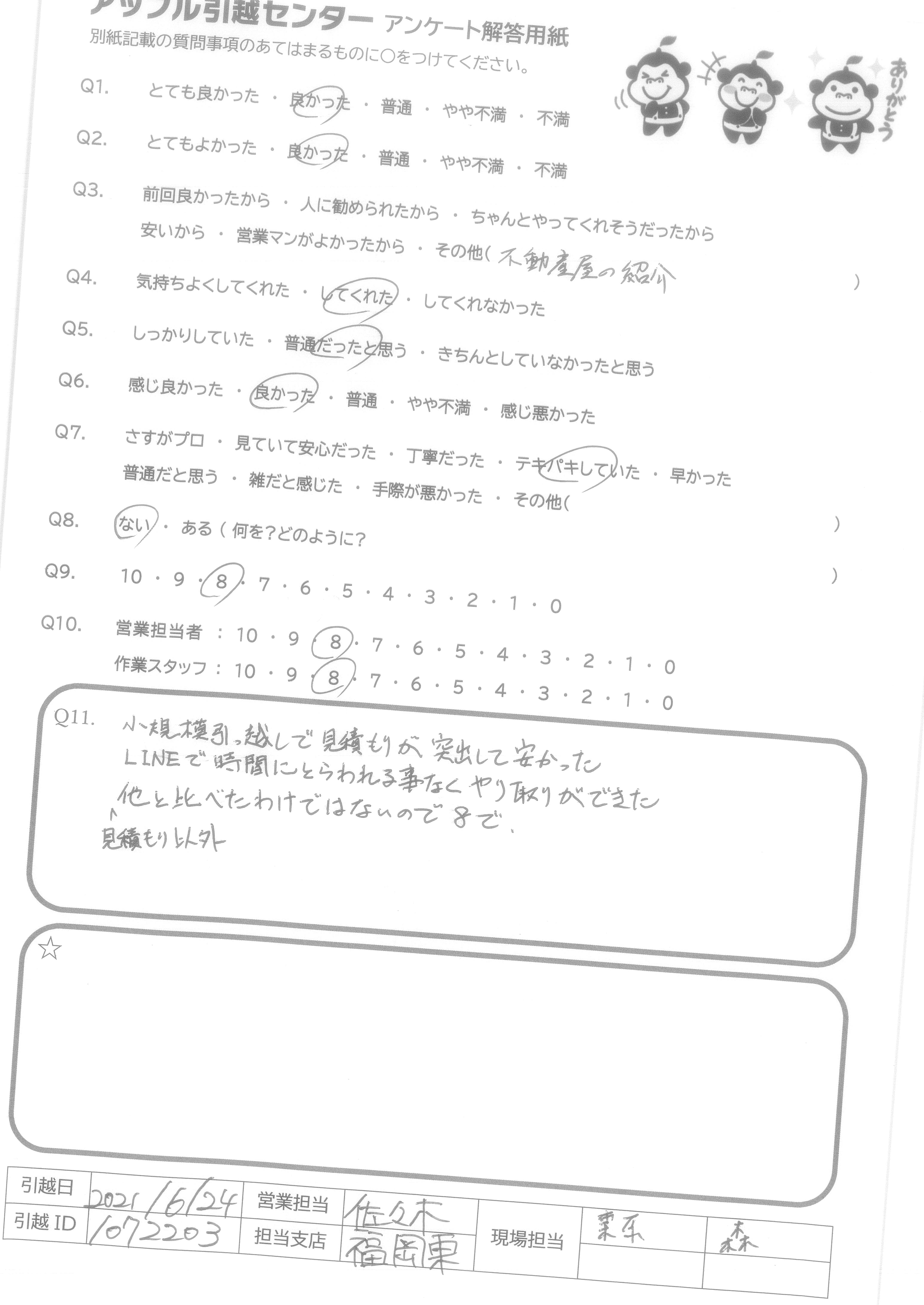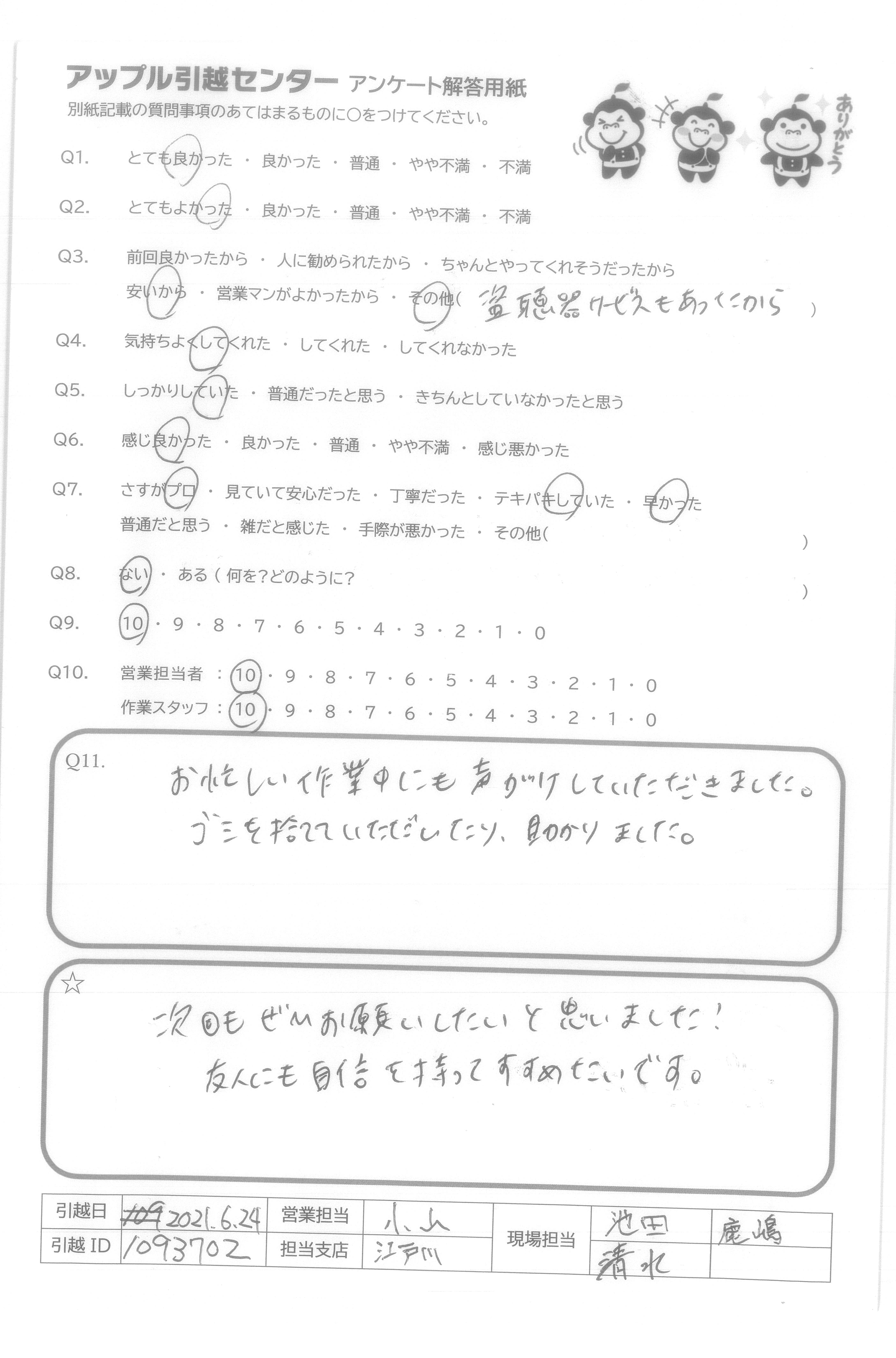 引越し日:2021年06月24日 エリア:東京都江東区