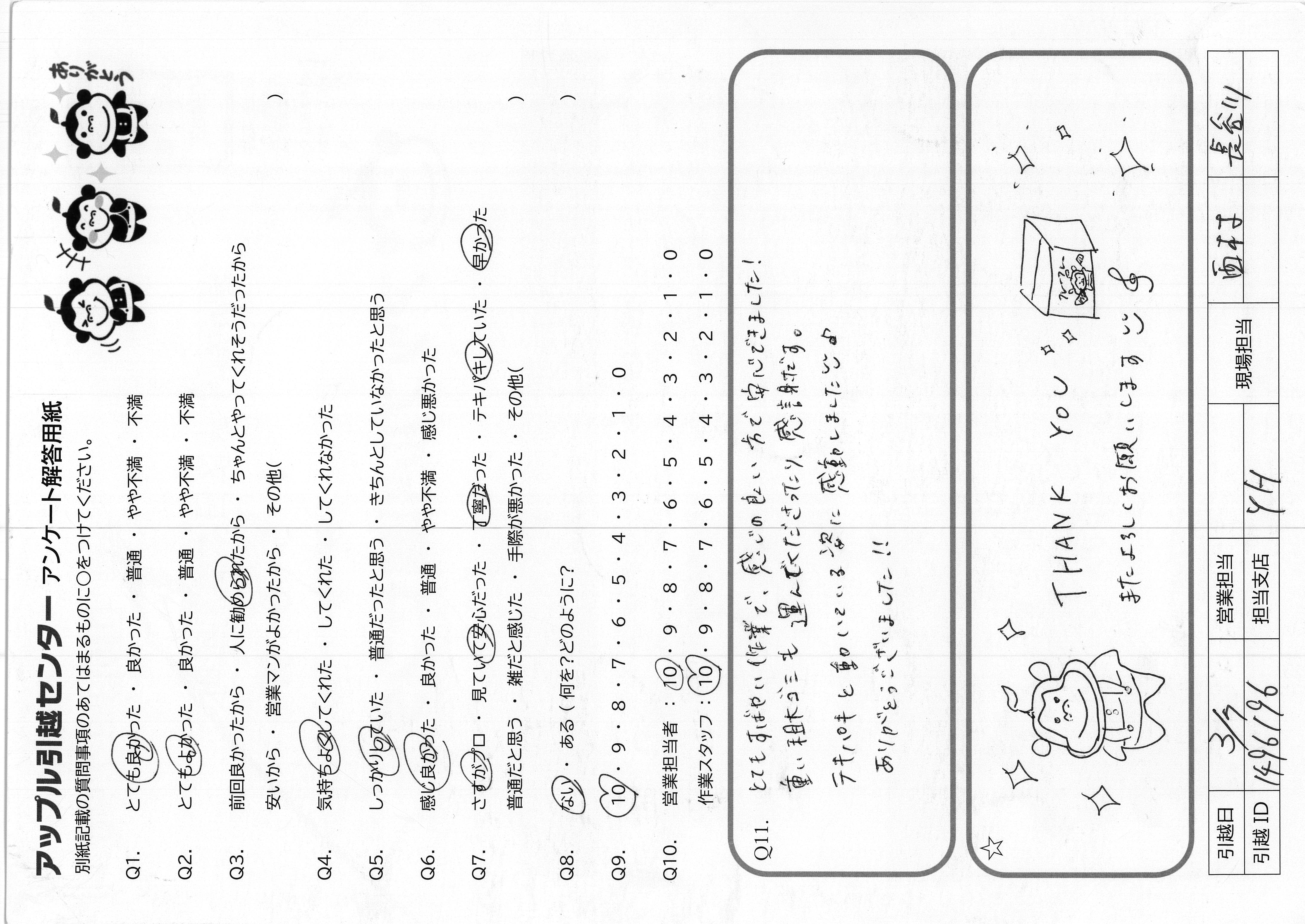 A.人生最後の引っ越しだったので、無事に終わることができて良かったです。 ありがとうございました。