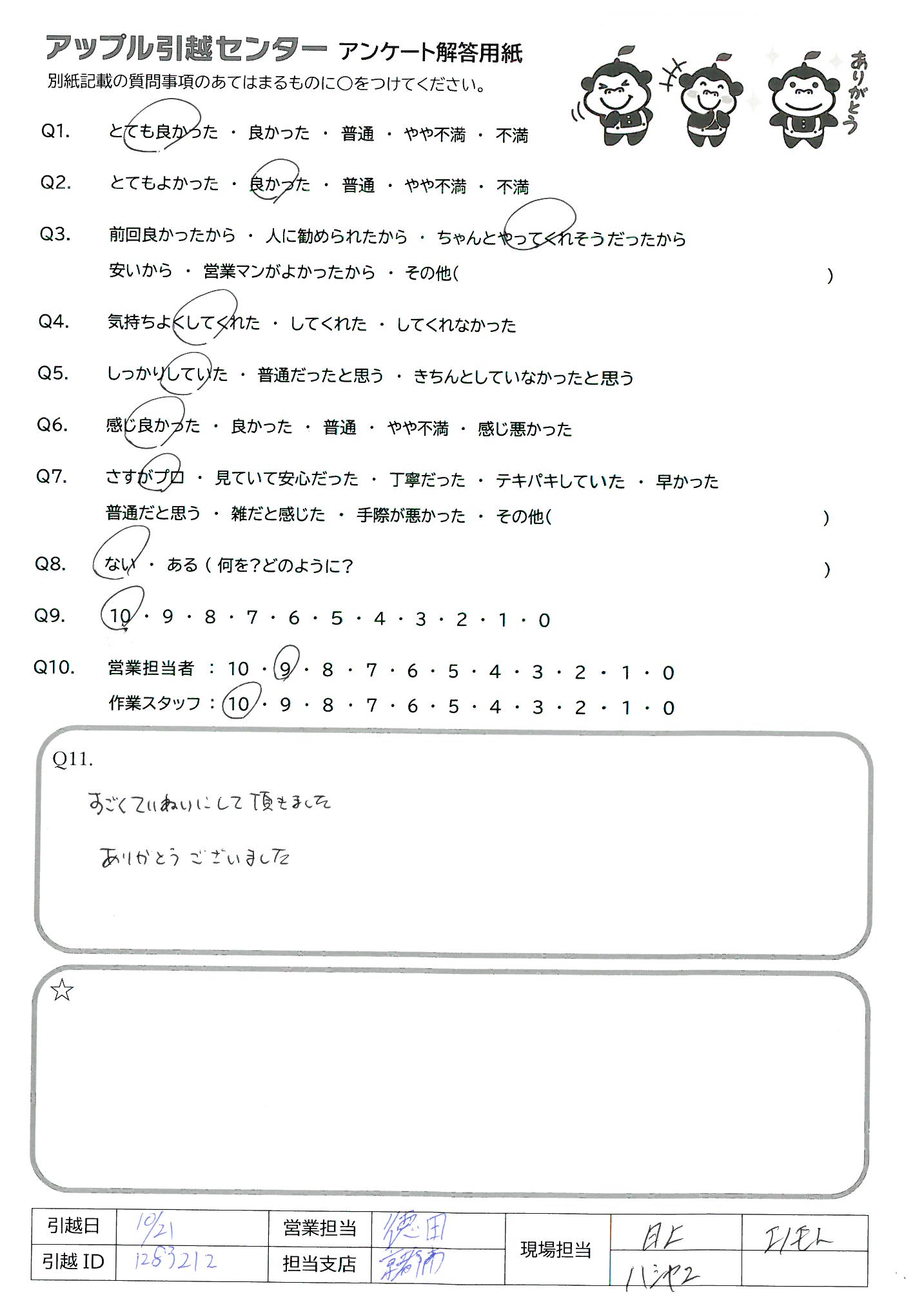 アップル引越センターでは、面映いお褒めの言葉も、胸に突き刺さるお叱りのコメントも、