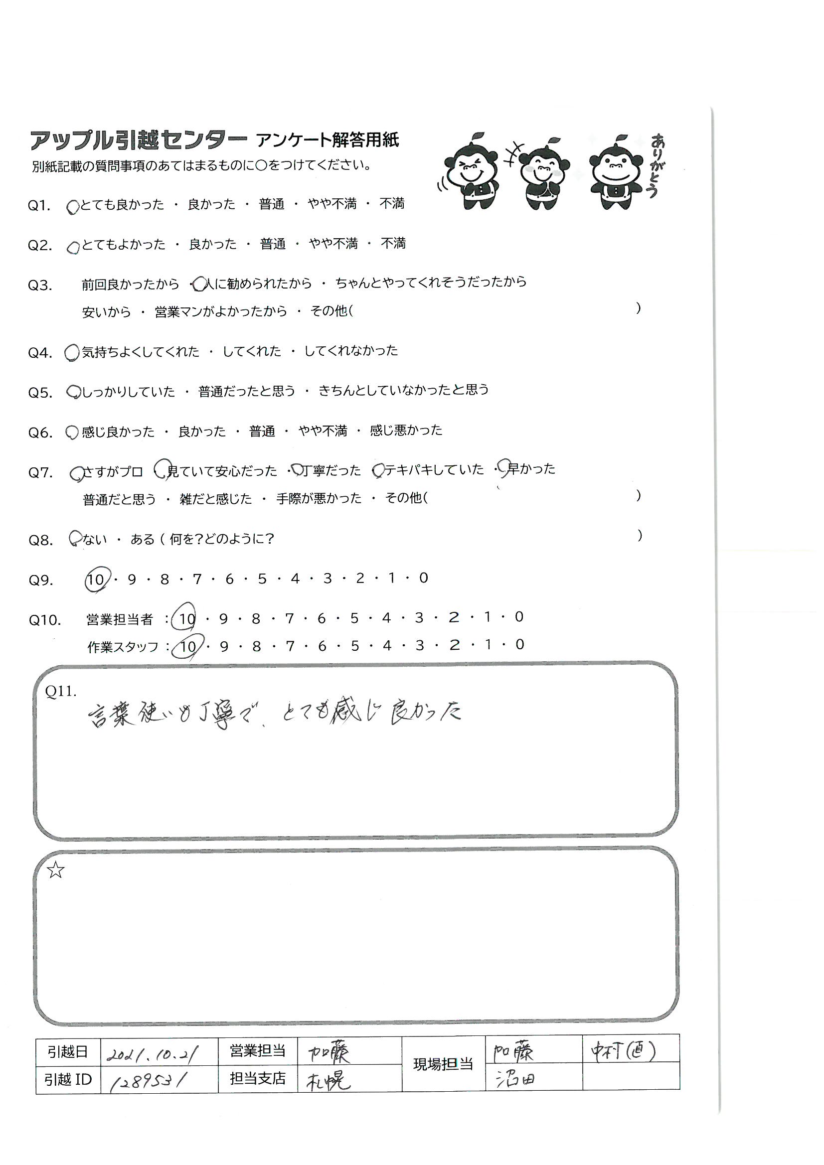 引越し日:2021年10月21日 エリア:北海道札幌市中央区