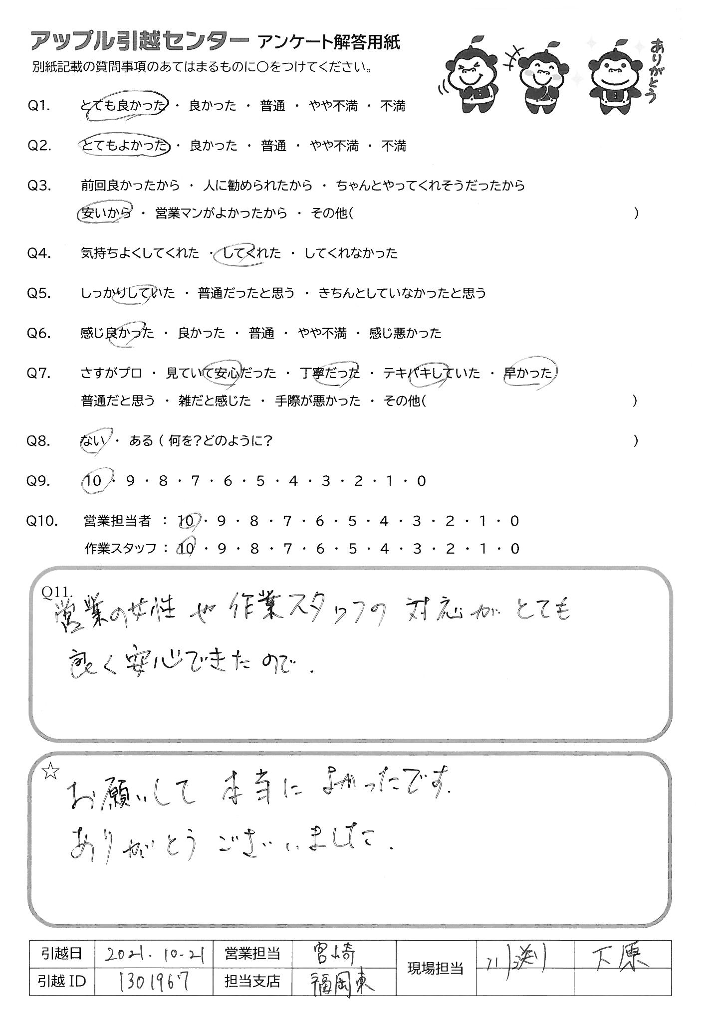 引越し日:2021年10月21日 エリア:福岡県福岡市中央区