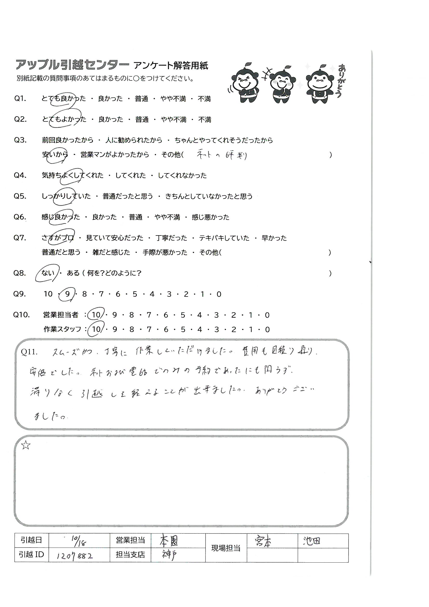 引越し日:2021年10月18日 エリア:兵庫県芦屋市