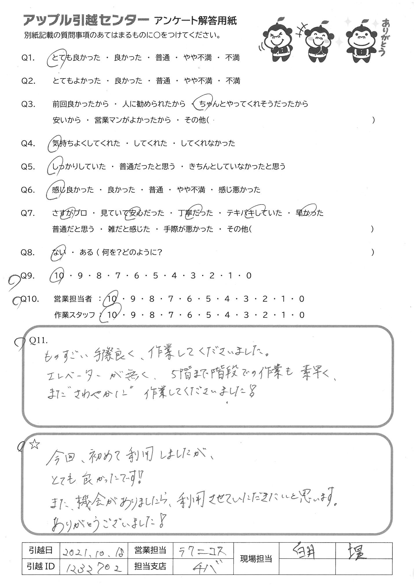 引越し日:2021年10月18日 エリア:千葉県浦安市