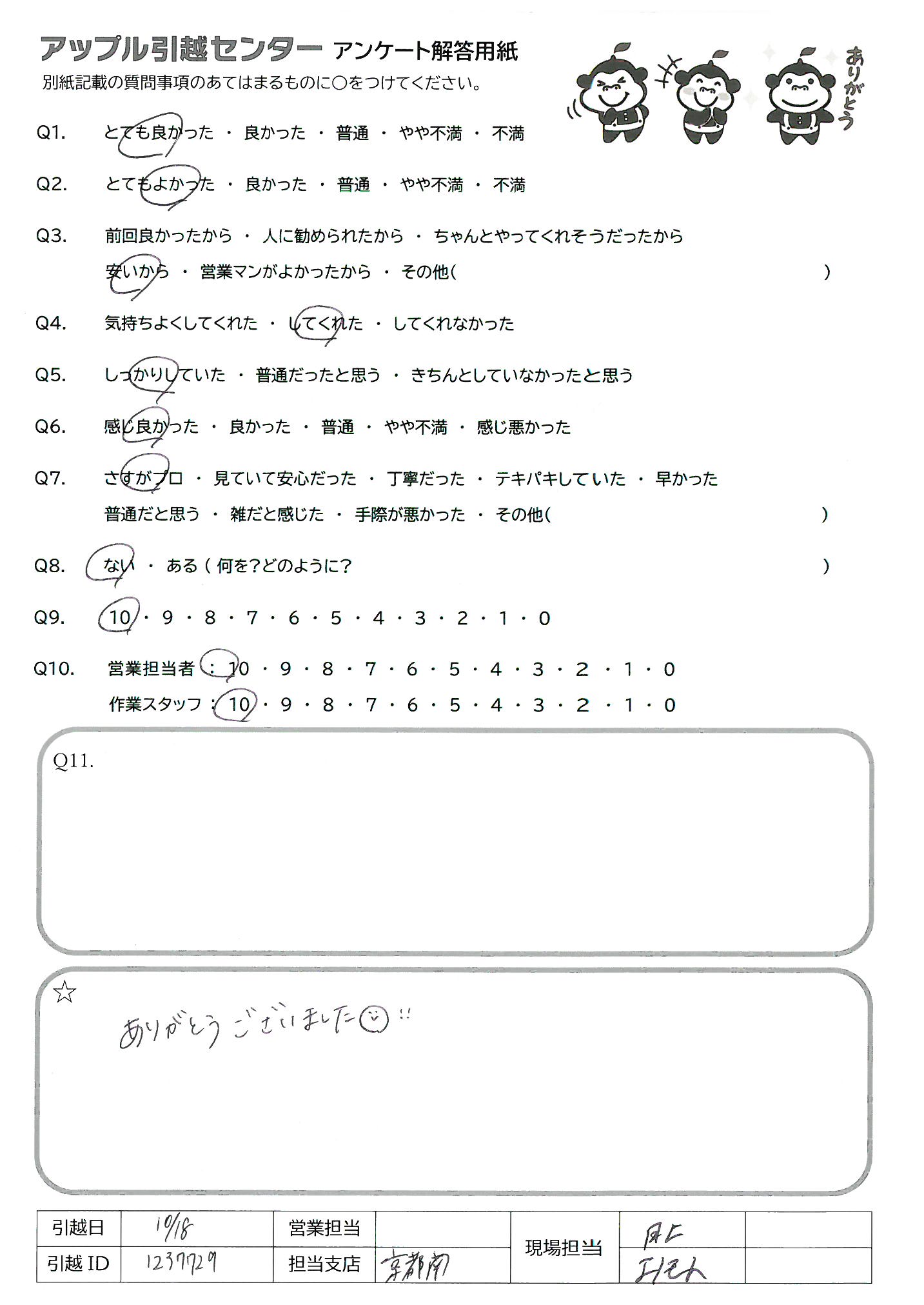 引越し日:2021年10月18日 エリア:京都府京都市右京区