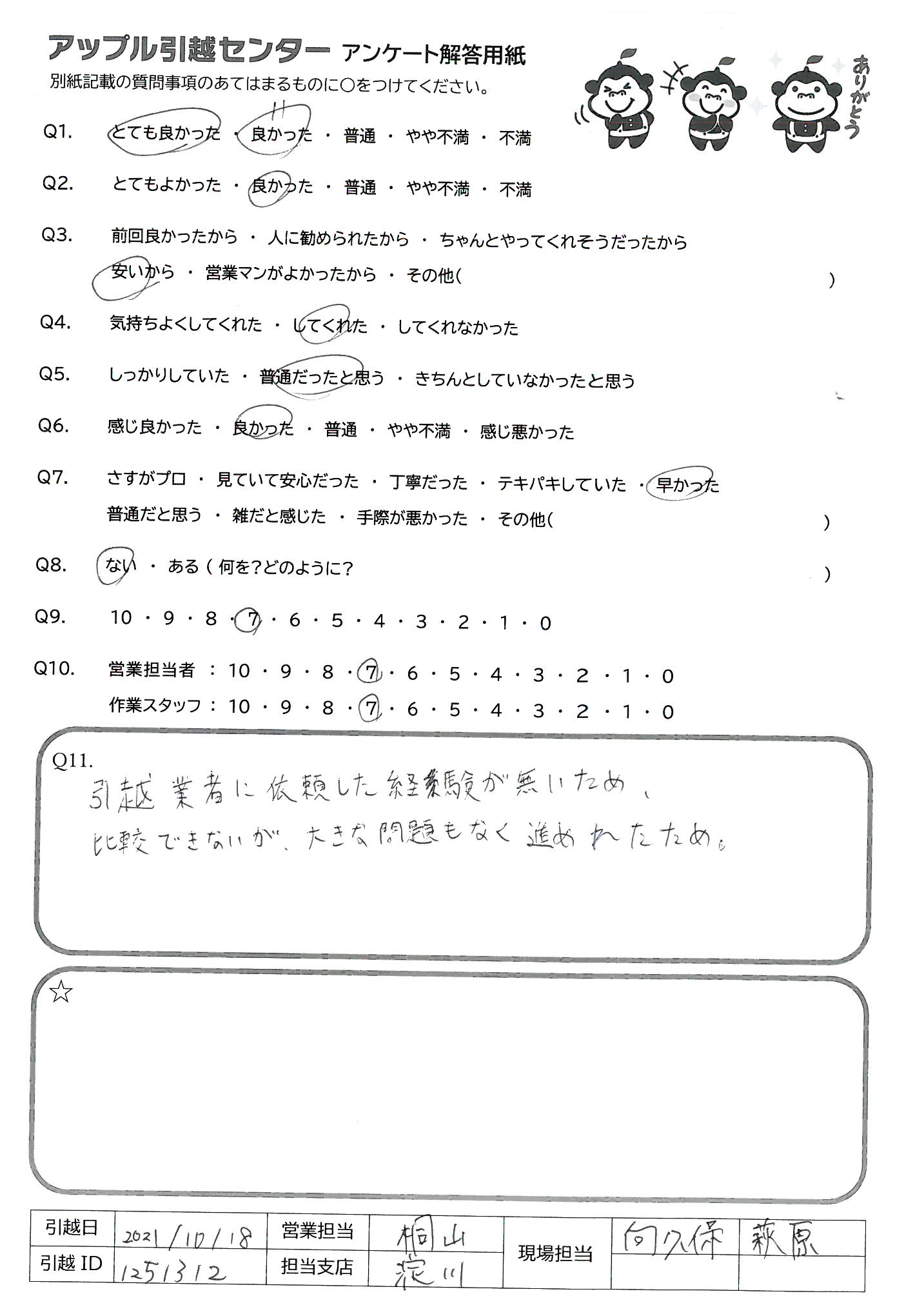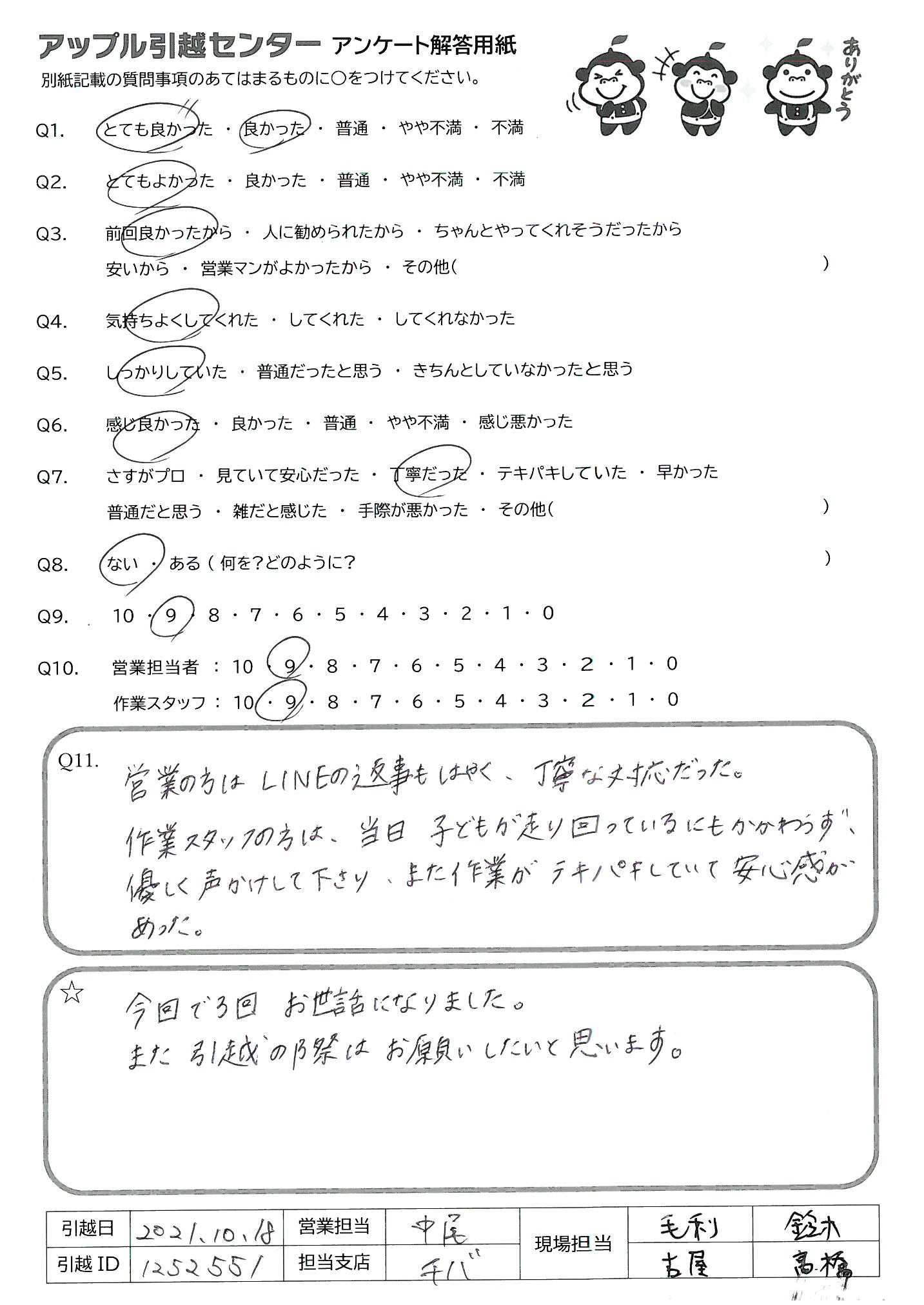 A.引越し当日はありがとうございました。