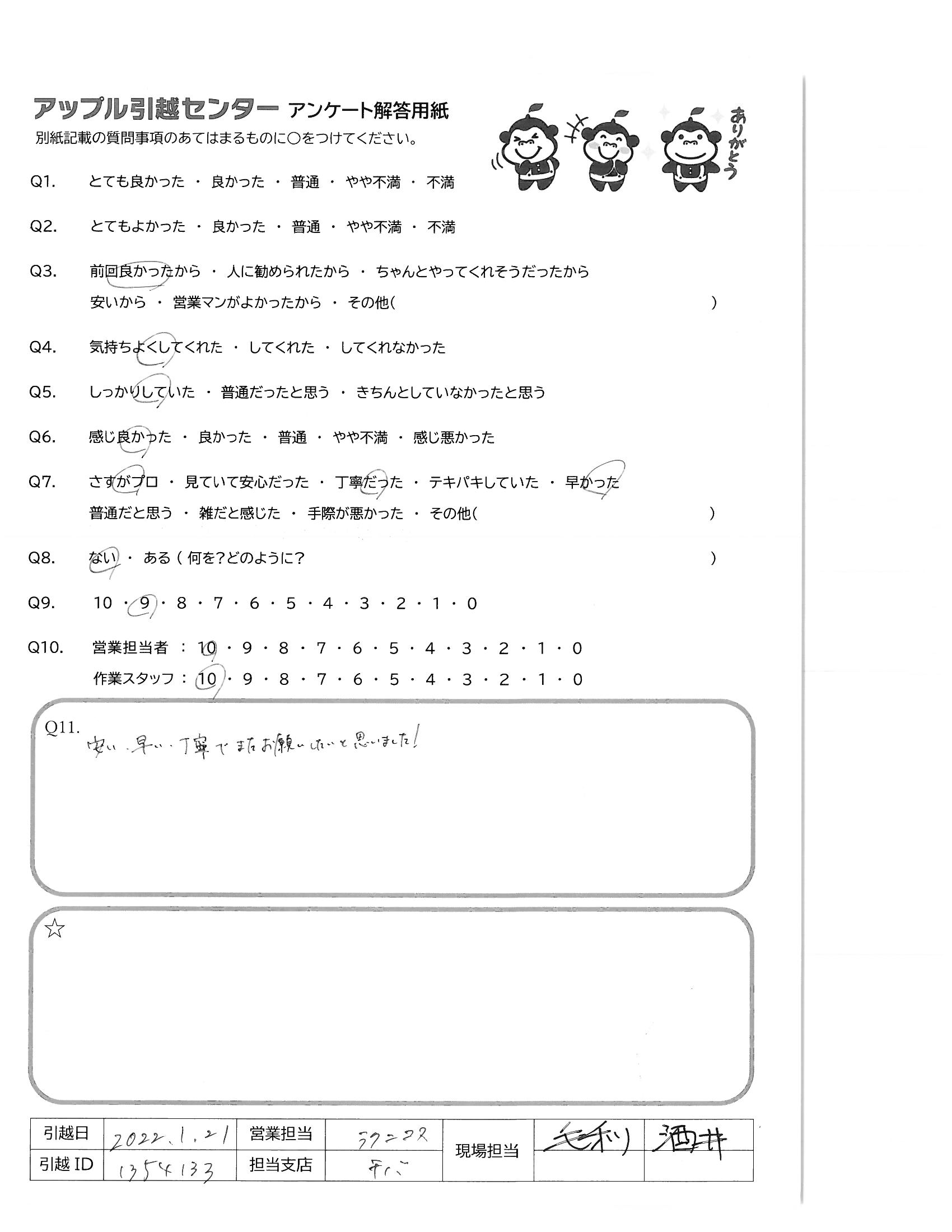 引越し日:2022年01月21日 エリア:愛知県清須市
