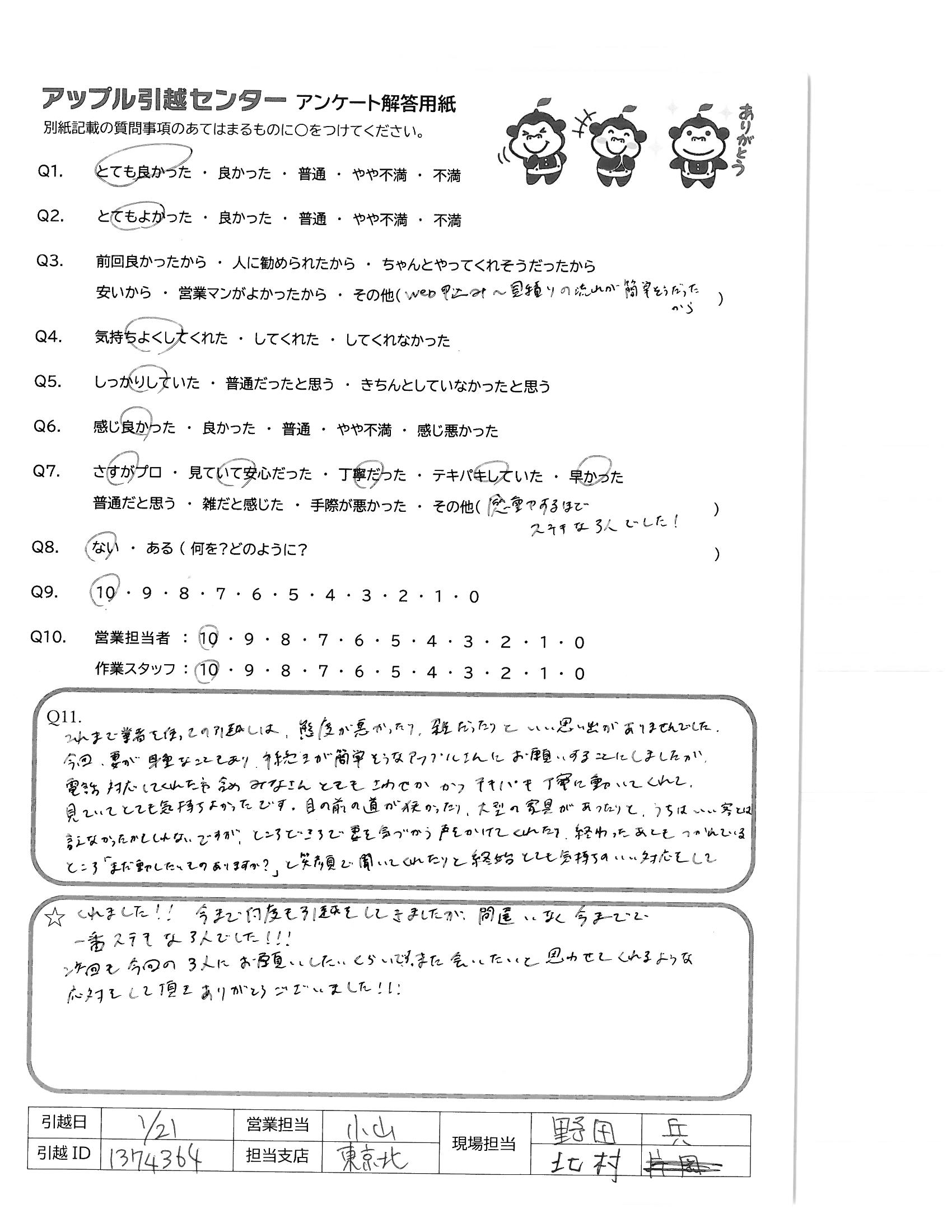 引越し日:2022年01月21日 エリア:東京都豊島区