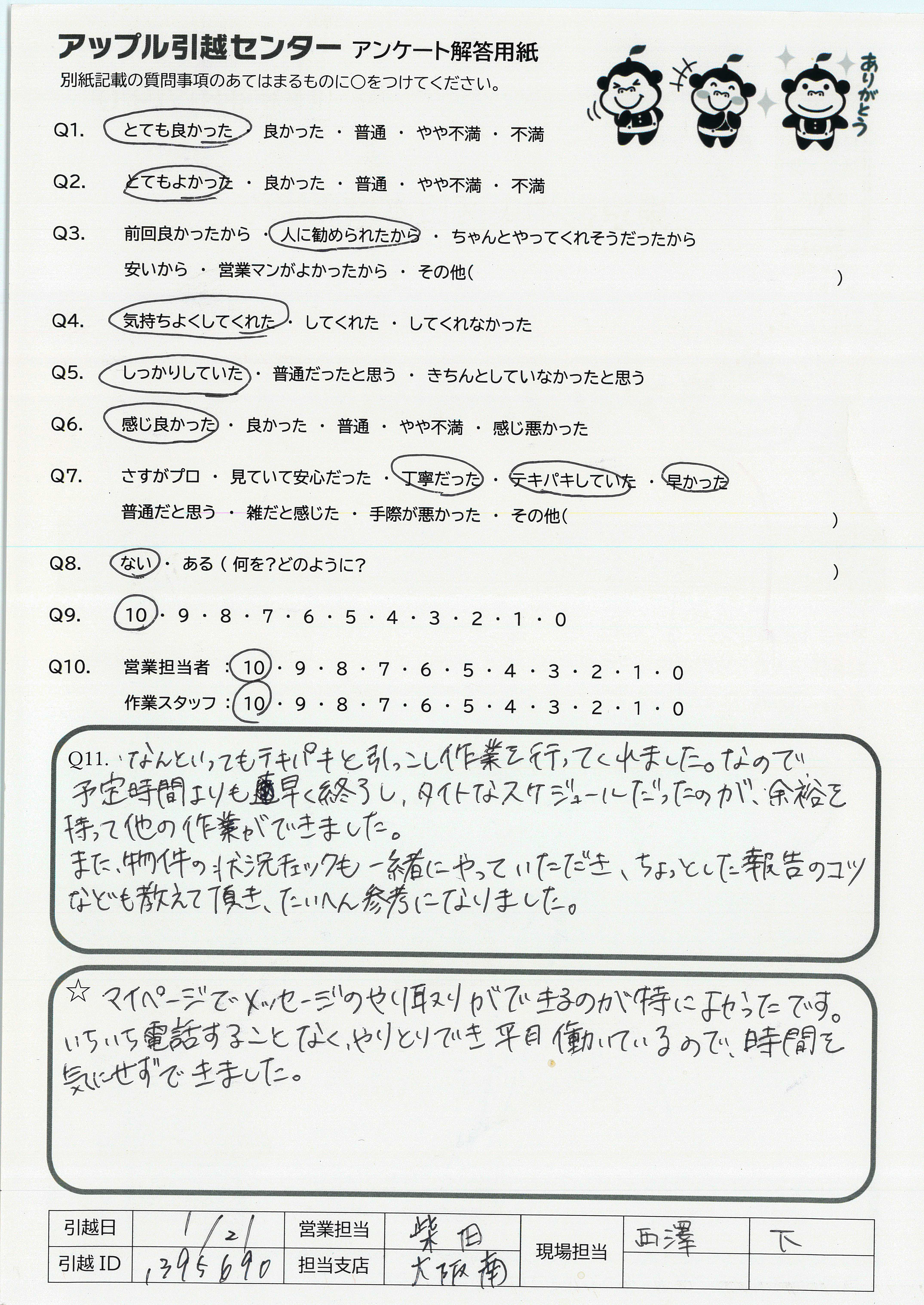 A.手際良く、ご丁寧でとても良かったです。 また引越す際は利用したいです。