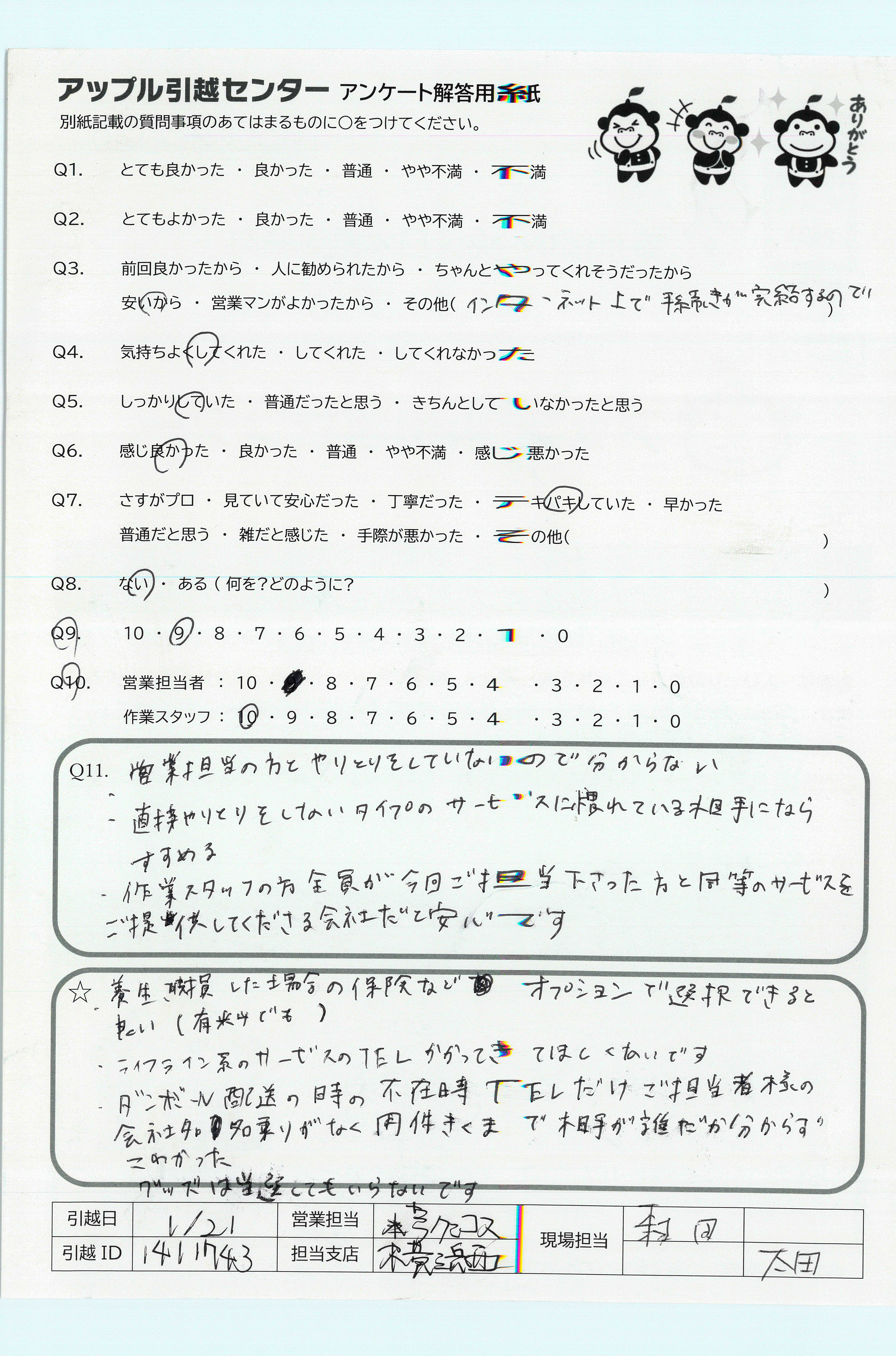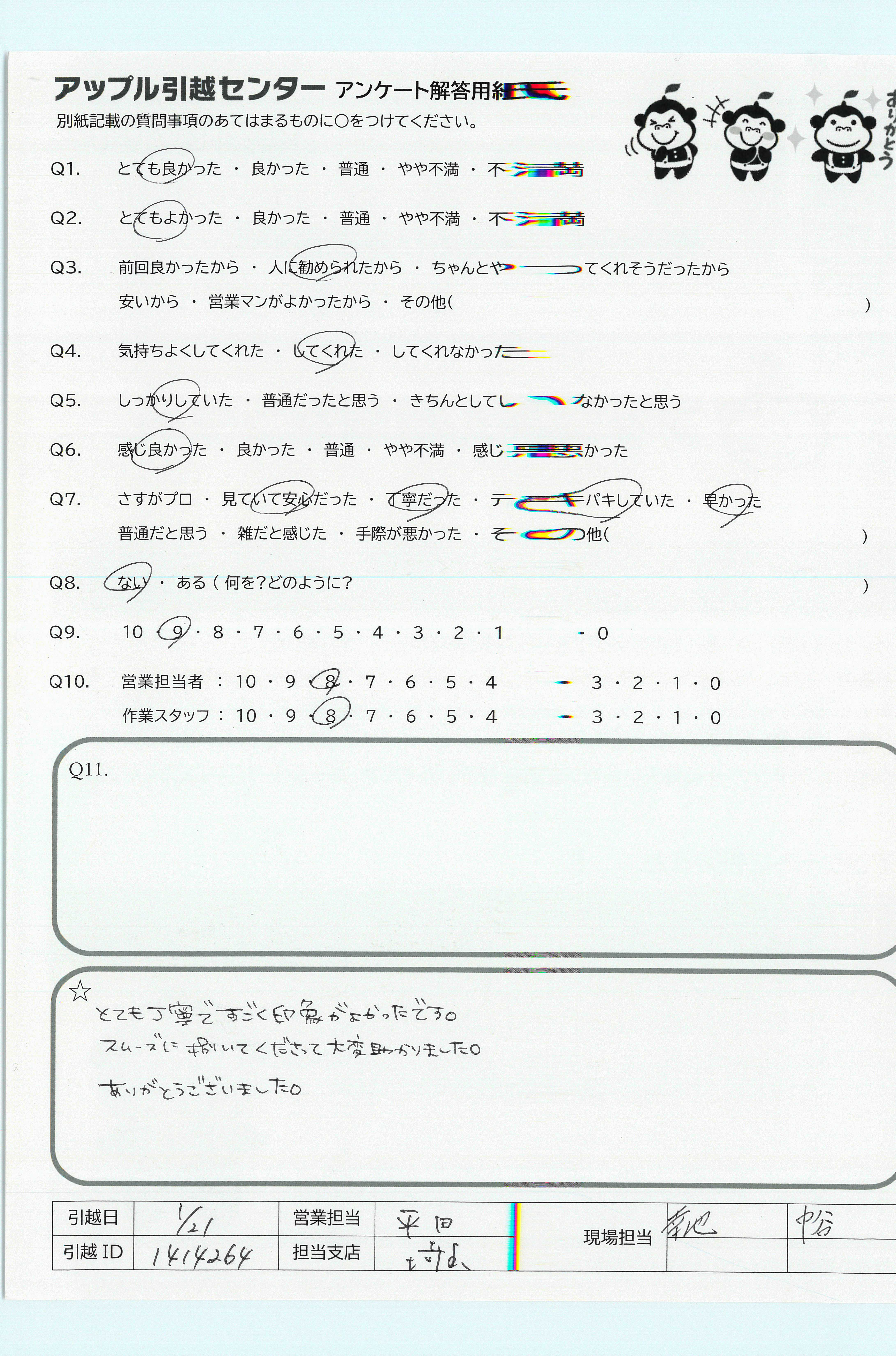 アップル引越センターでは、面映いお褒めの言葉も、胸に突き刺さるお叱りのコメントも、