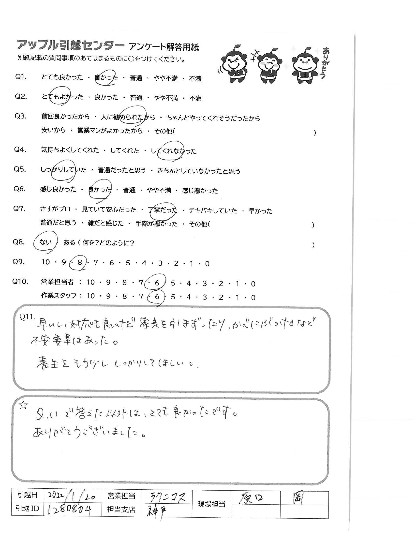 引越し日:2022年01月20日 エリア:兵庫県西宮市