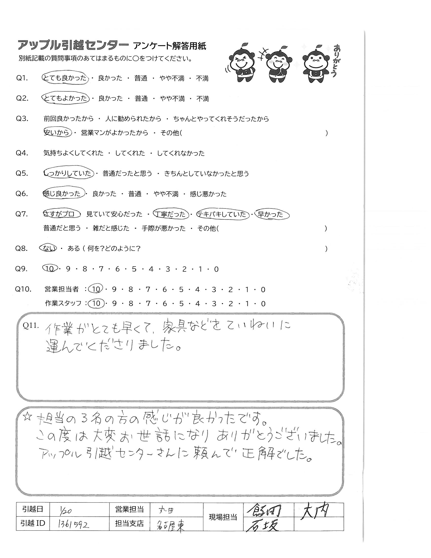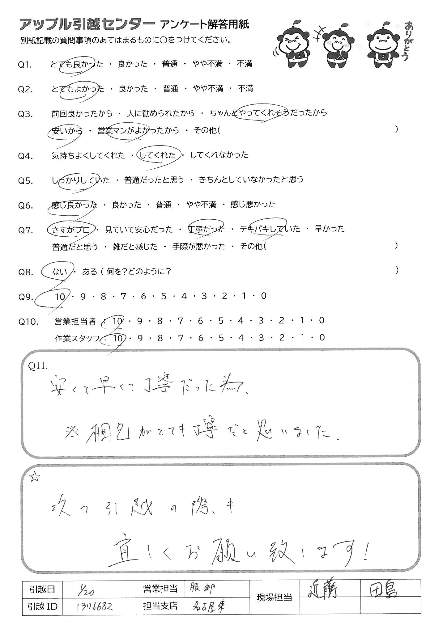 引越し日:2022年01月20日 エリア:愛知県名古屋市西区