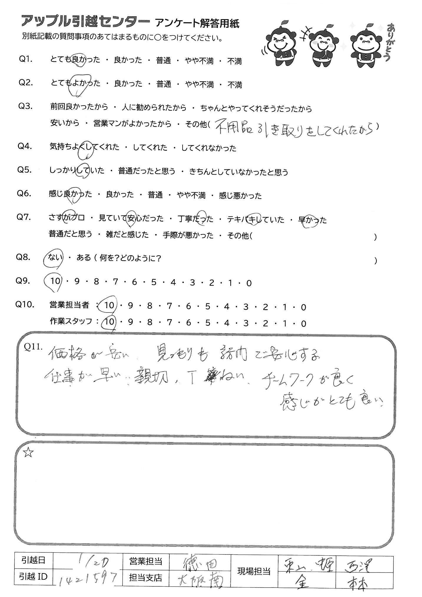 A.作業がとても早くて、家具などをていねいに運んでくださりました。