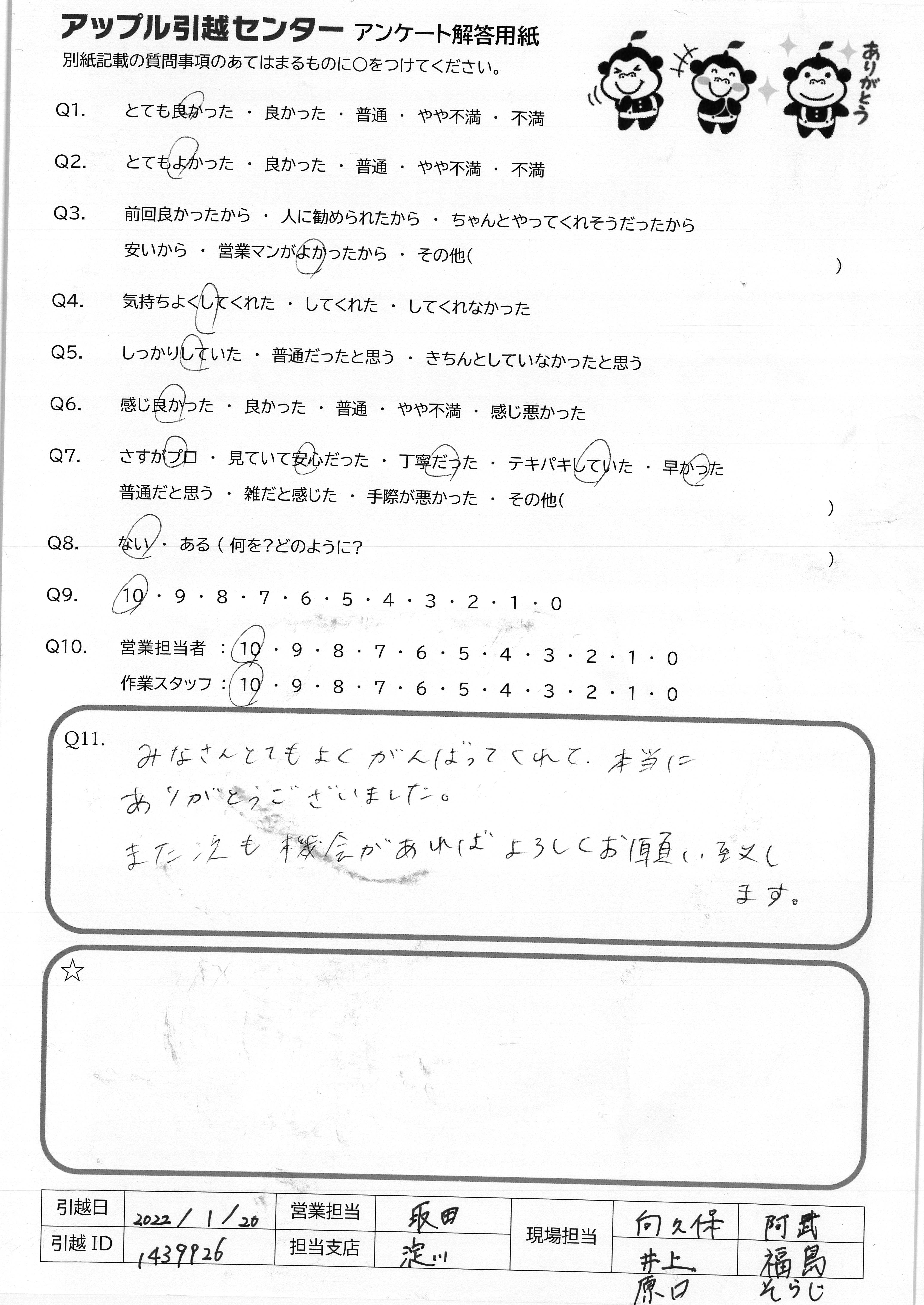 A.次に引越の際も 宜しくお願い致します!