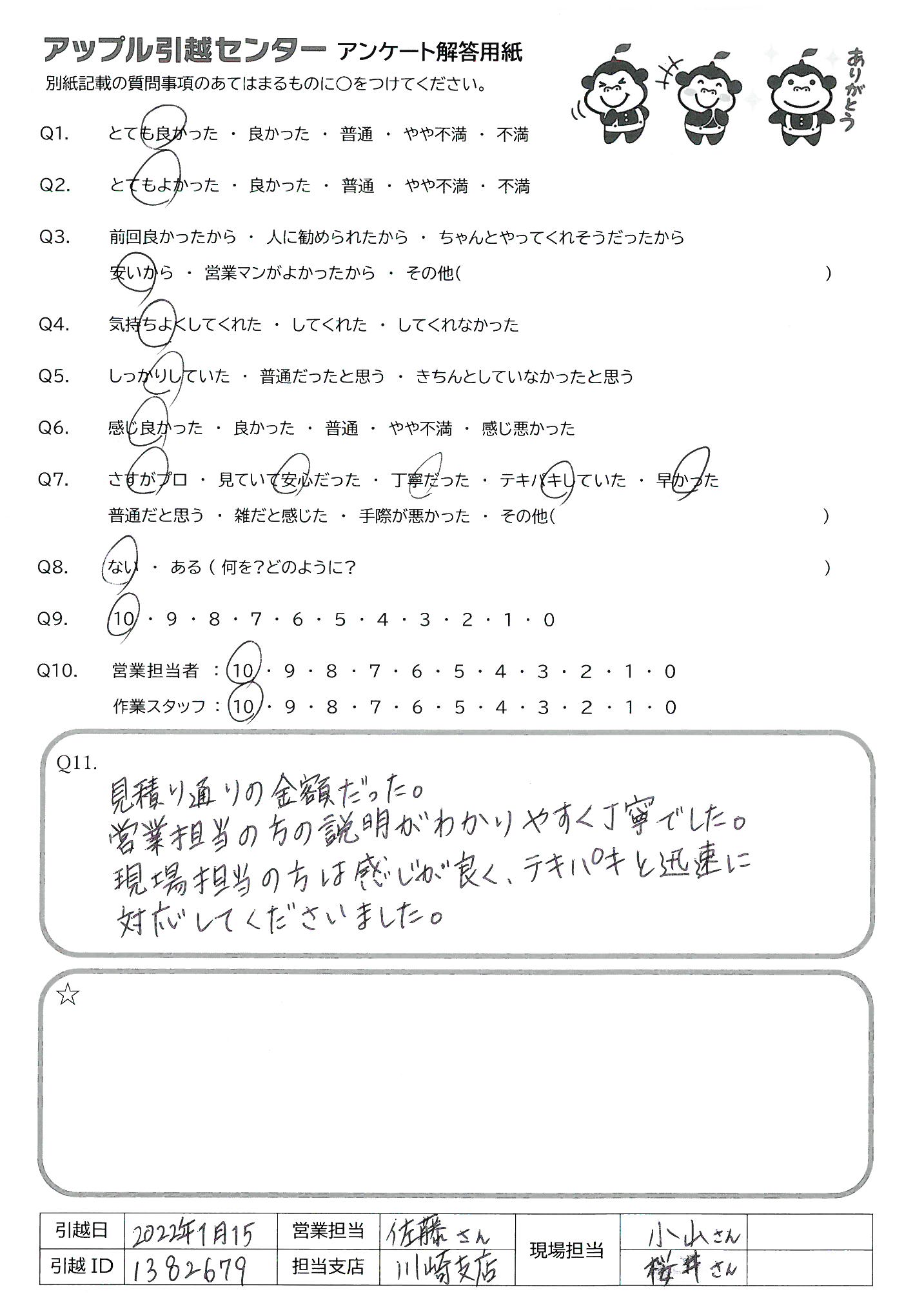 引越し日:2022年01月15日 エリア:神奈川県川崎市多摩区