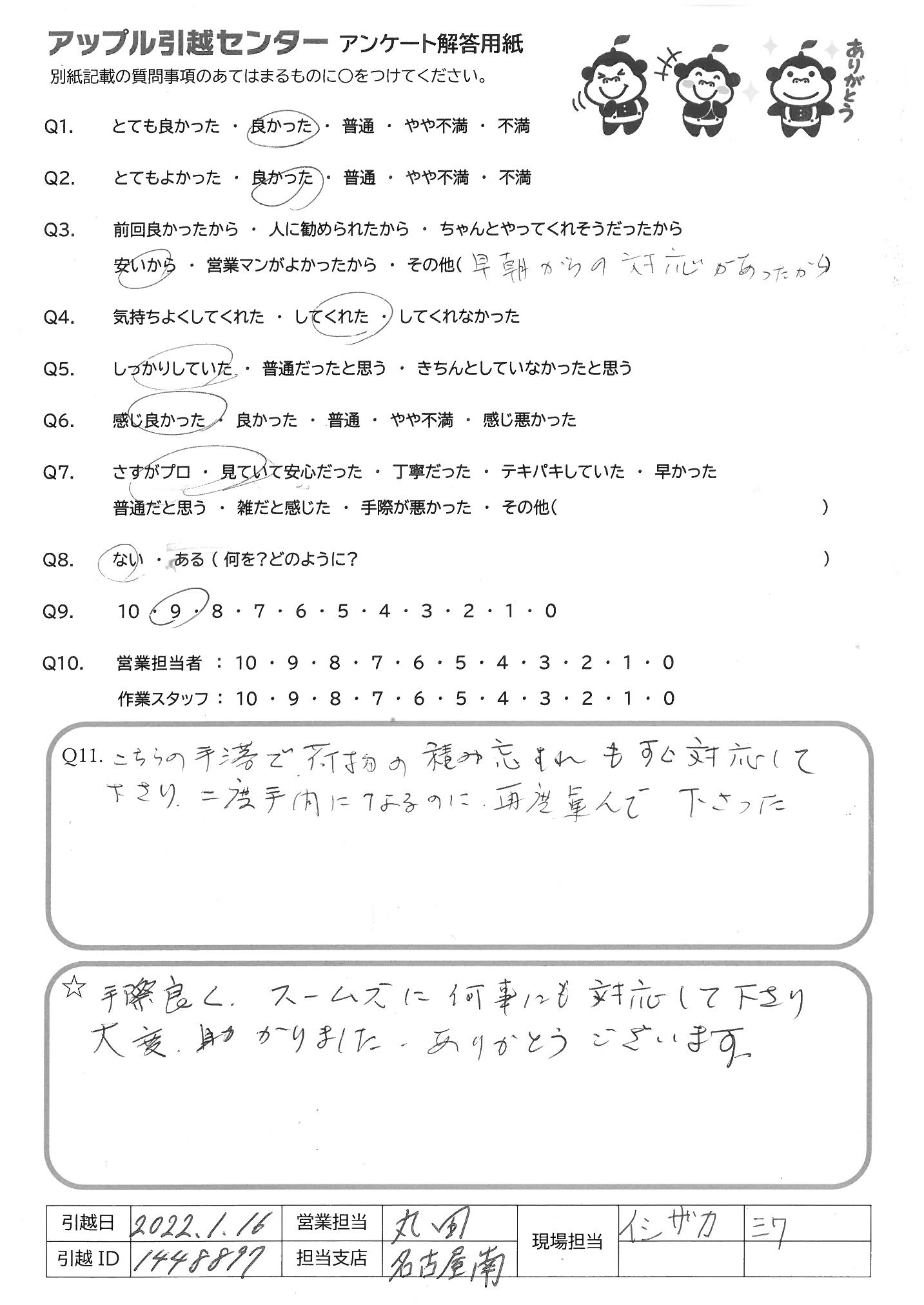 引越し日:2022年01月15日 エリア:愛知県名古屋市中村区