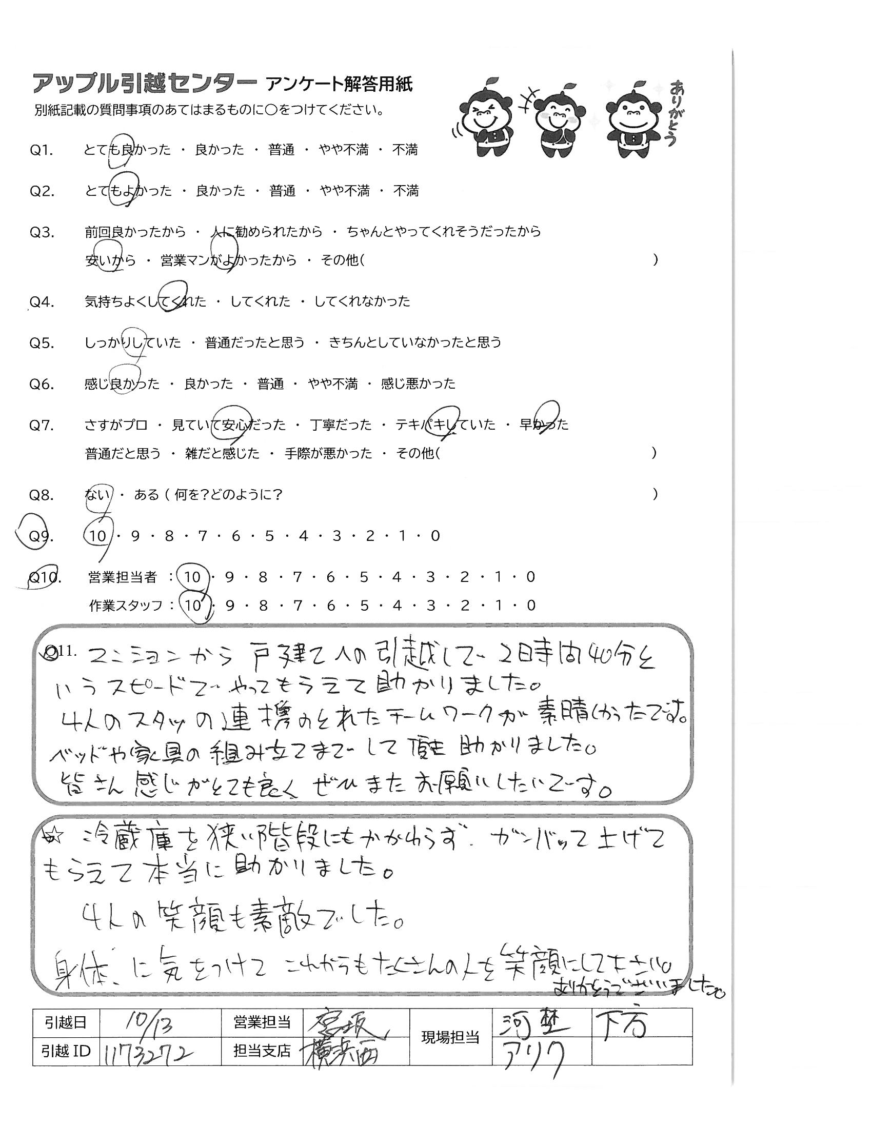 引越し日:2021年10月13日 エリア:熊本県熊本市東区