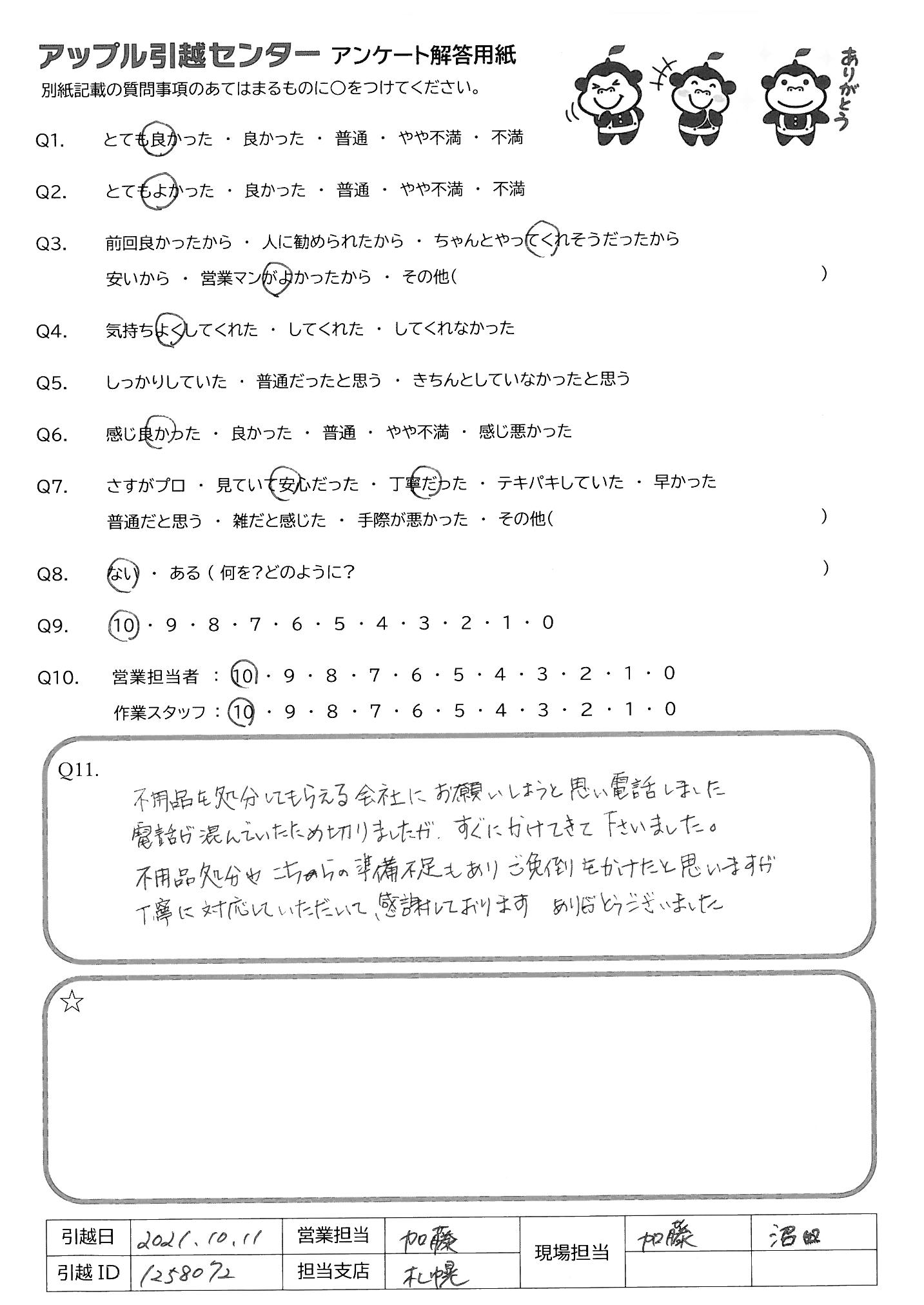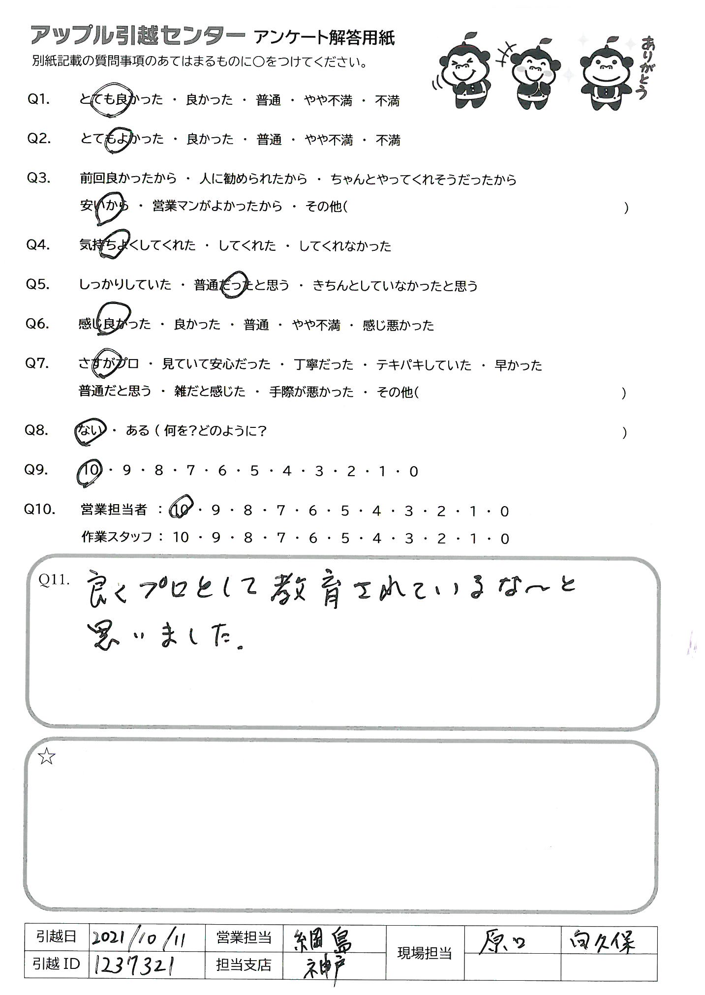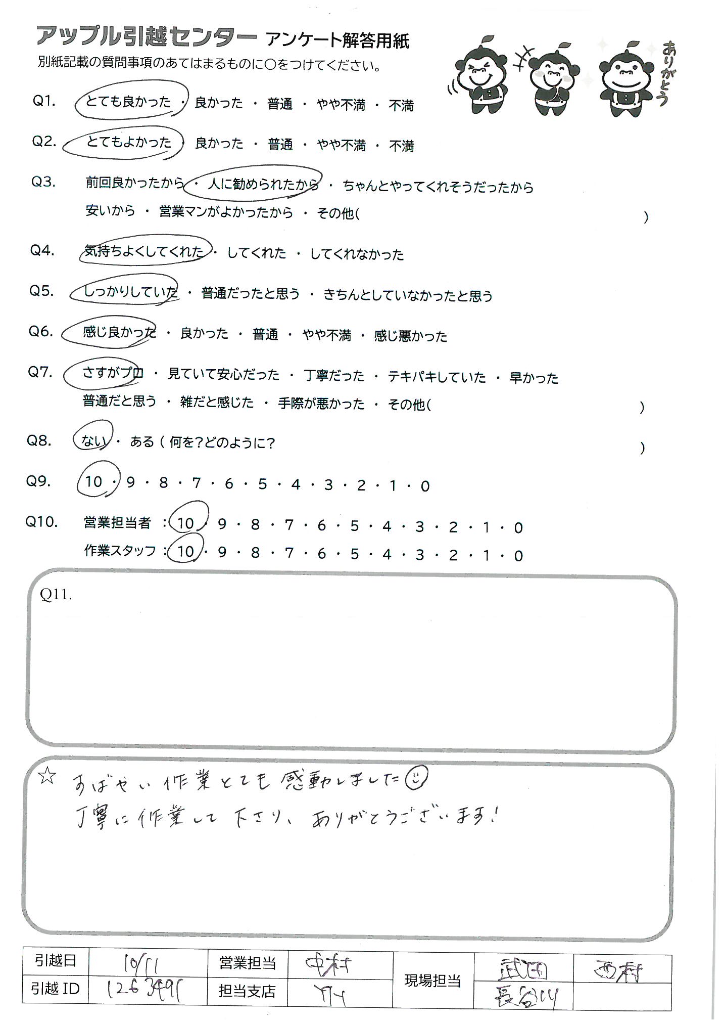 A.他の引越し会社がどんな感じかわからないのでQ9、10は5にしました。