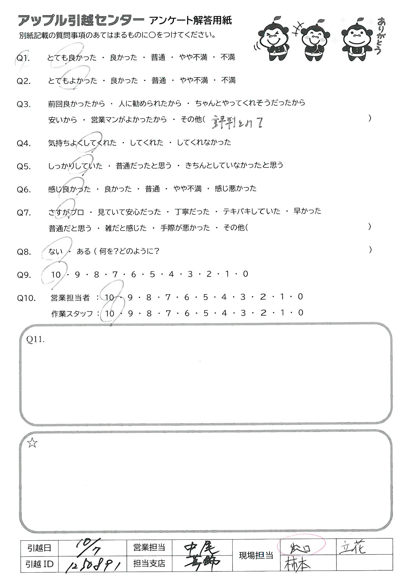 引越し日:2021年10月07日 エリア:福岡県福岡市博多区
