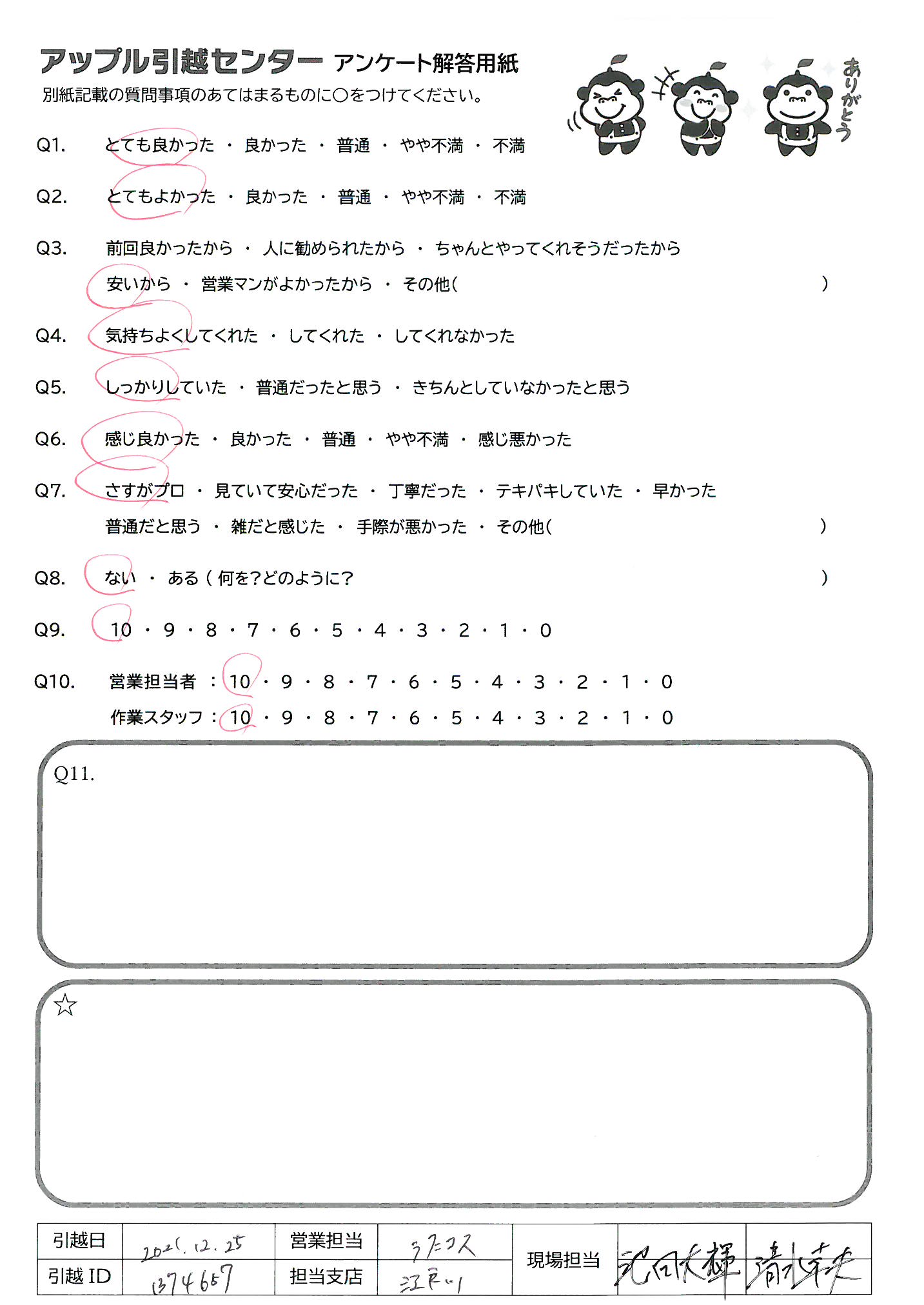 アップル引越センターでは、面映いお褒めの言葉も、胸に突き刺さるお叱りのコメントも、
