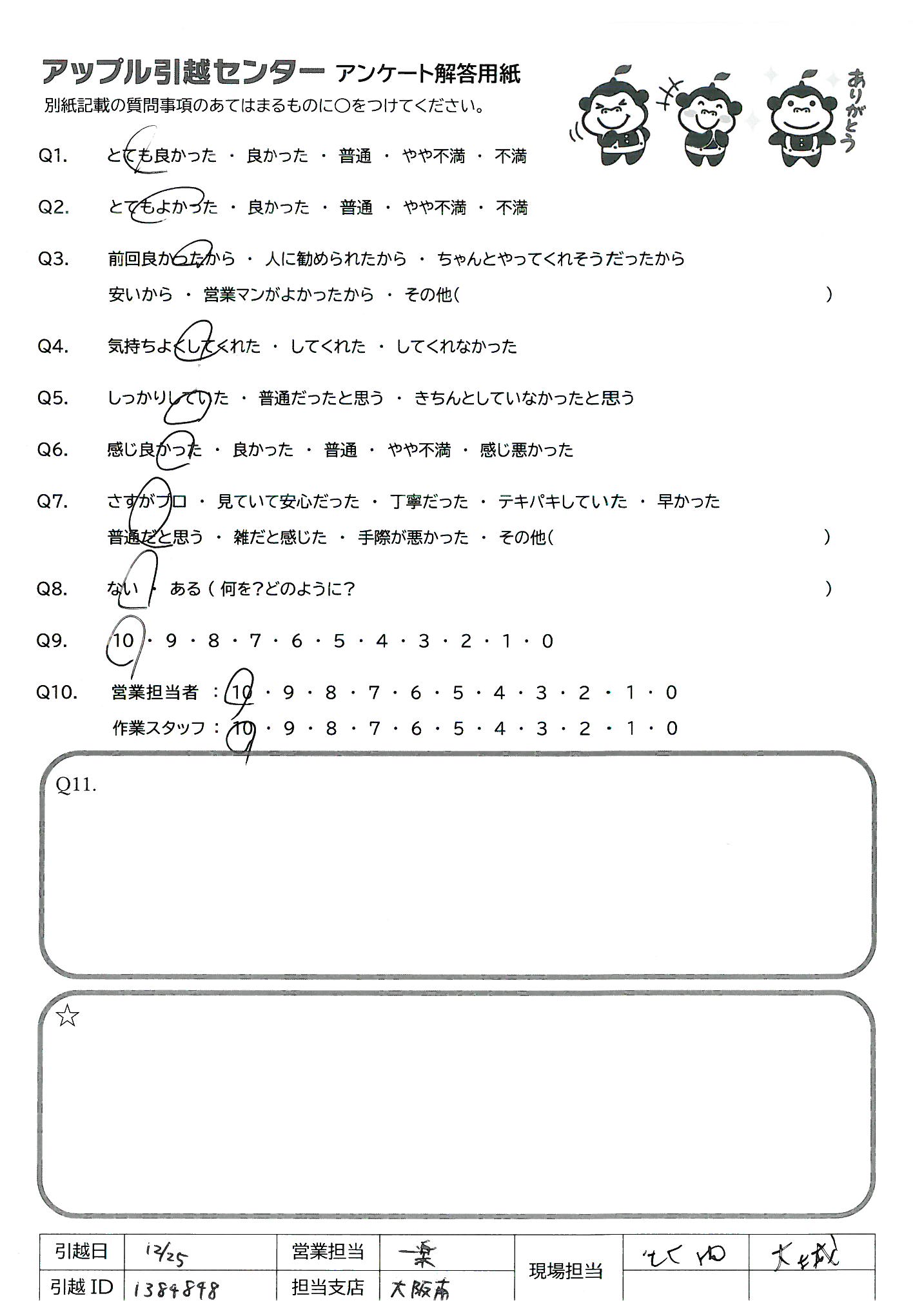 引越し日:2021年12月25日 エリア:大阪府大阪市淀川区