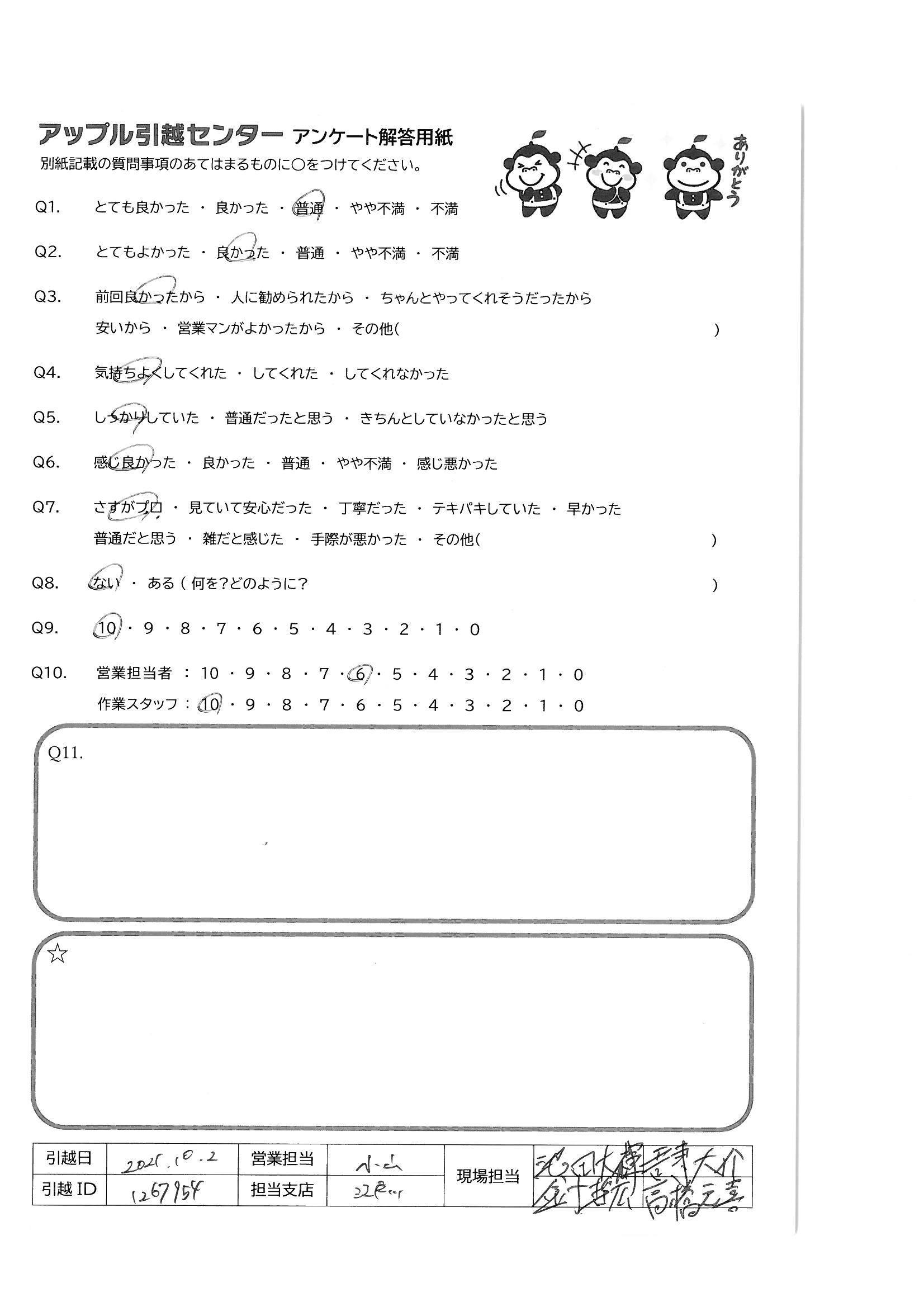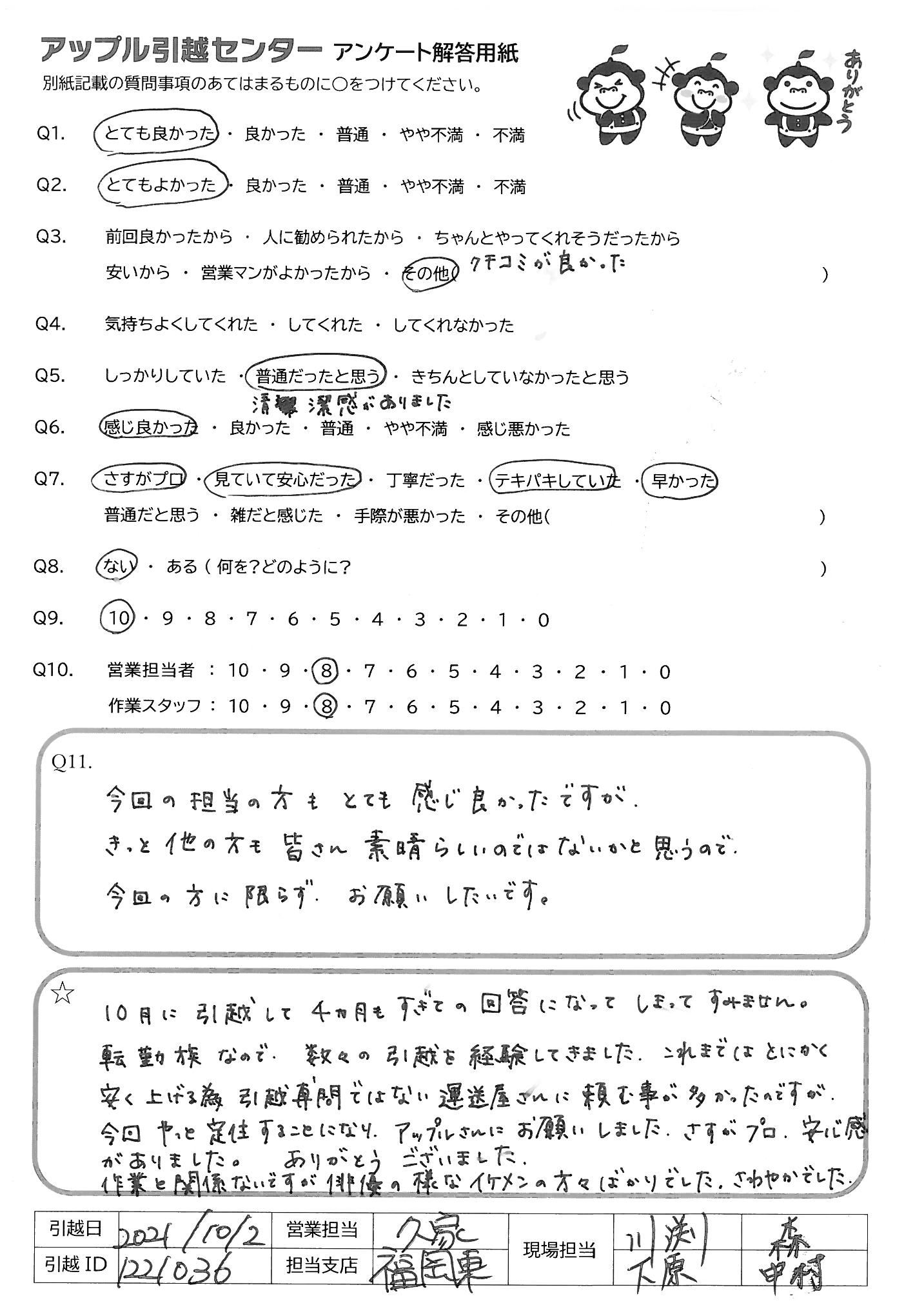 引越し日:2021年10月02日 エリア:福岡県福岡市東区