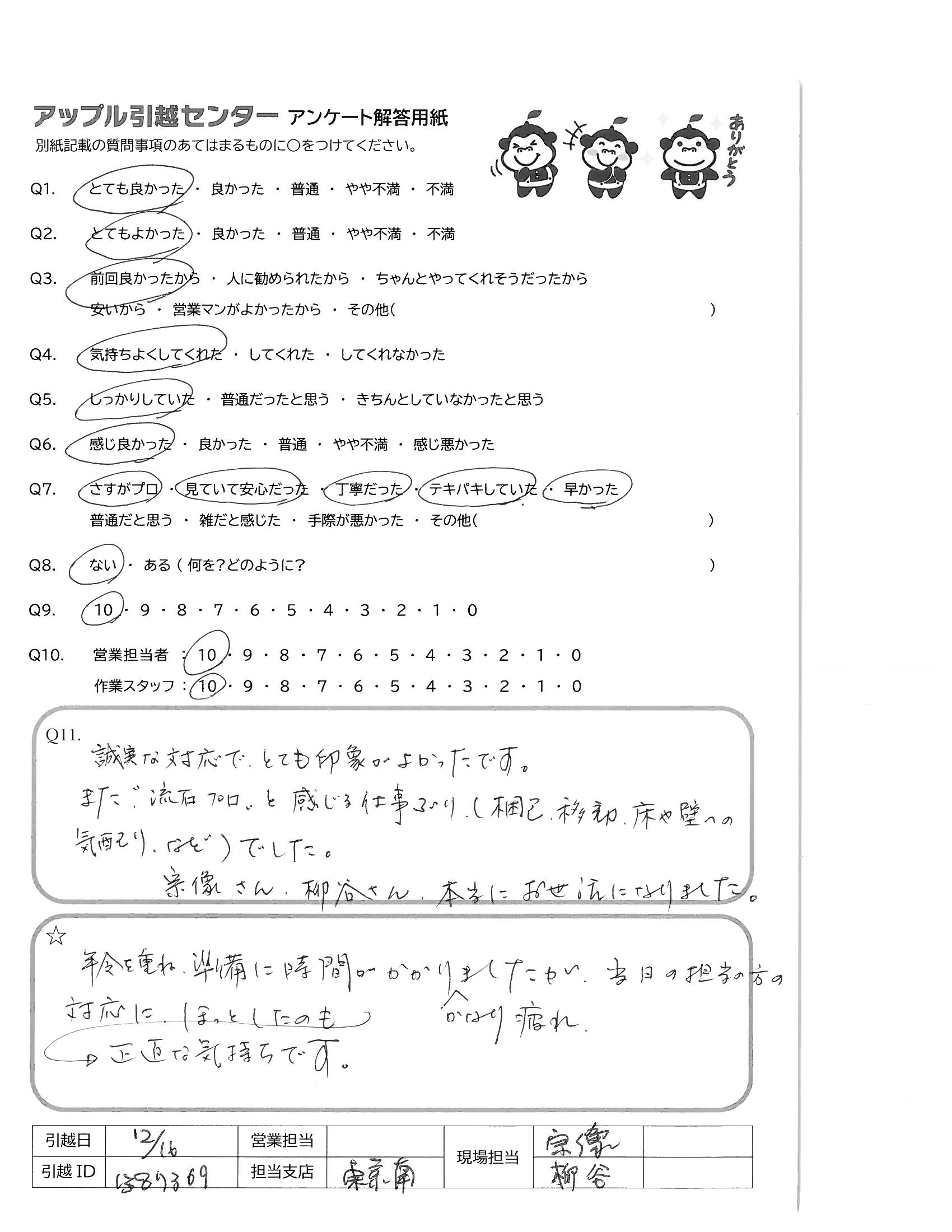 引越し日:2021年12月16日 エリア:東京都墨田区