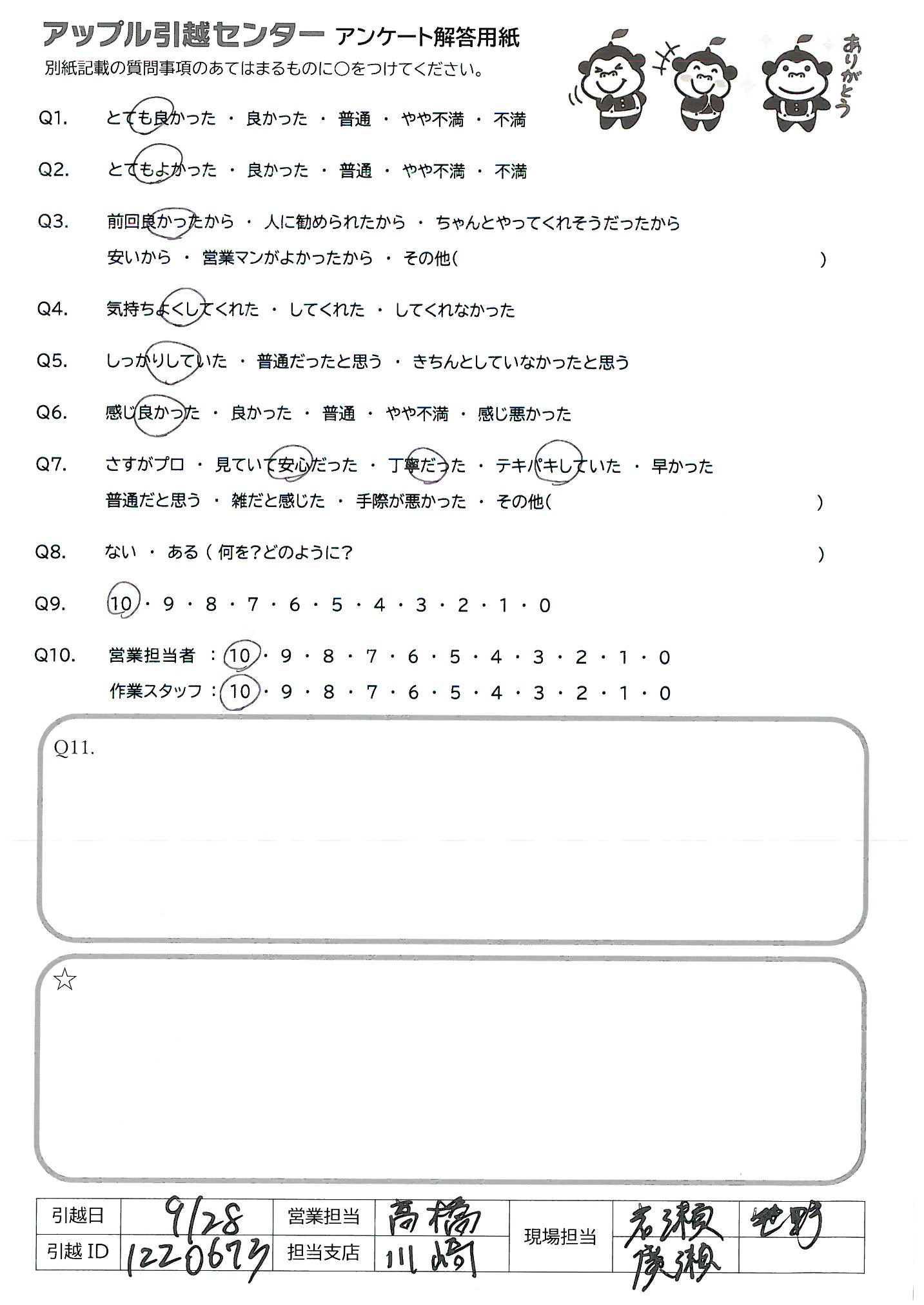 引越し日:2021年09月28日 エリア:神奈川県川崎市多摩区