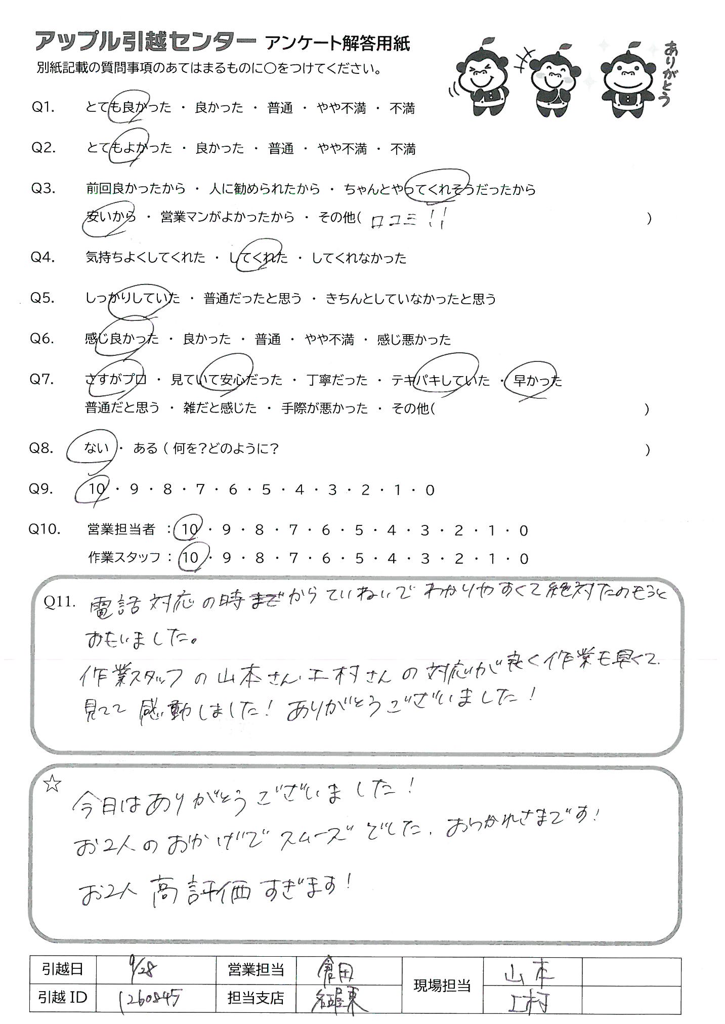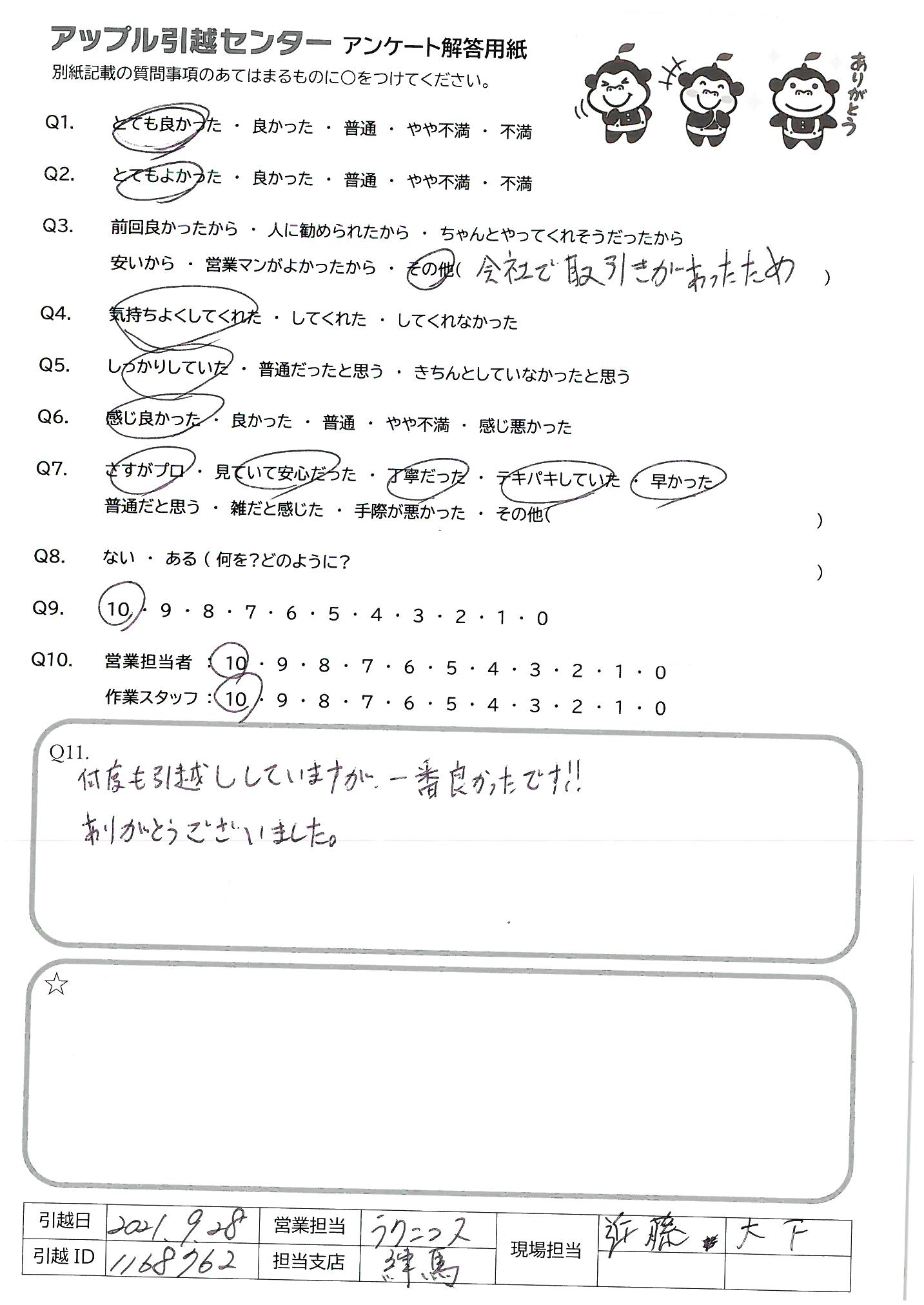 A.何度も引越ししていますが、一番良かったです!!ありがとうございました。