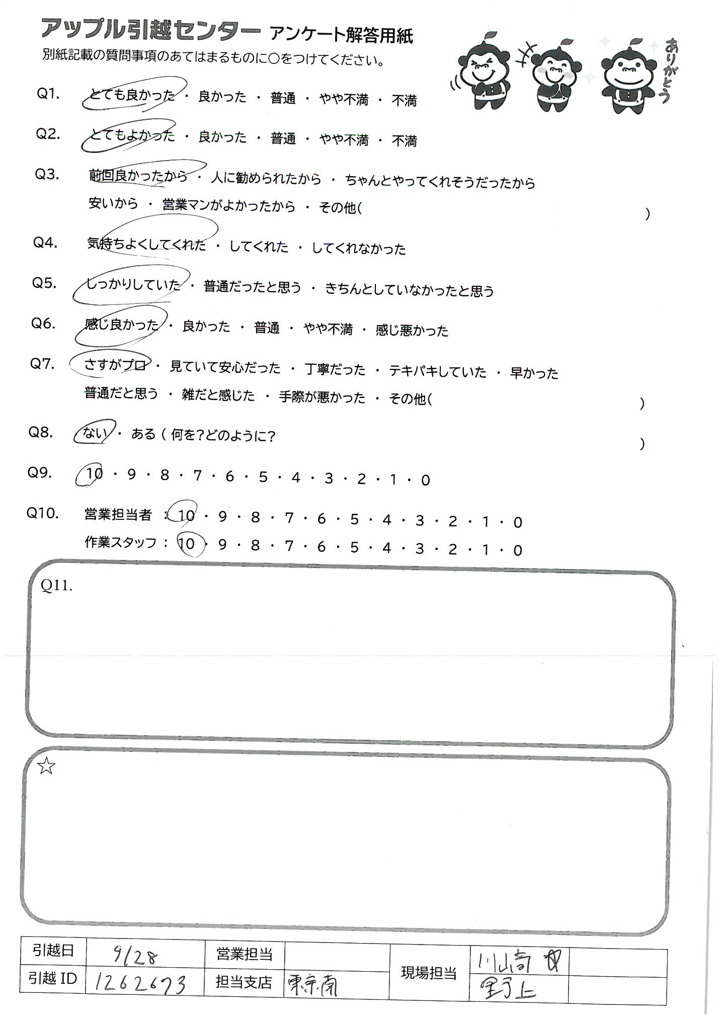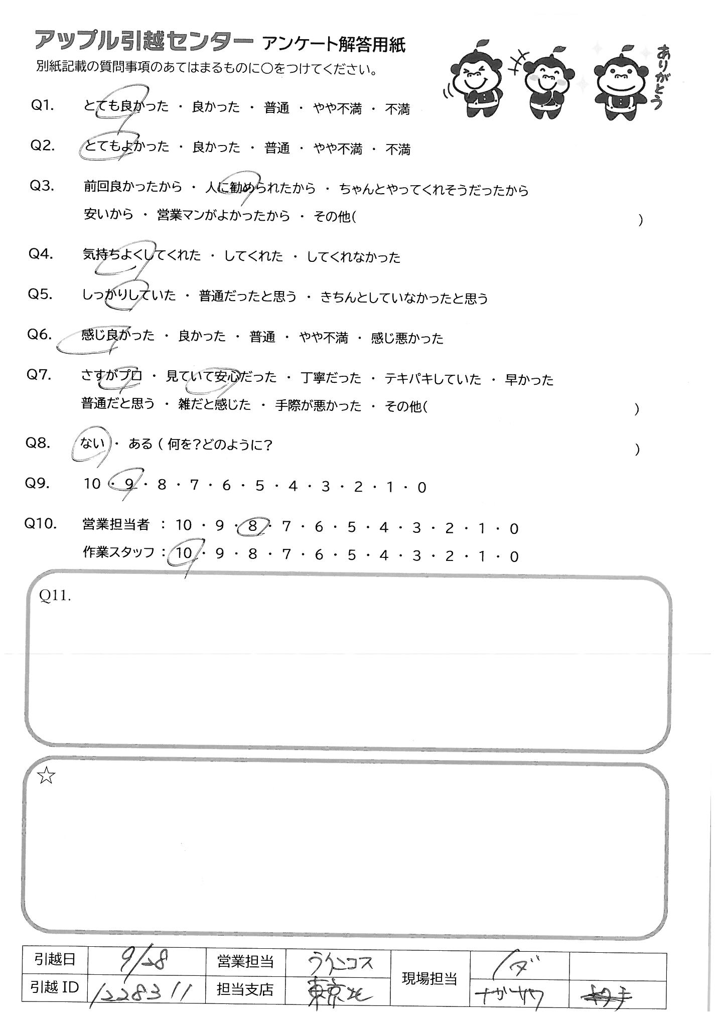 引越し日:2021年09月28日 エリア:東京都江東区