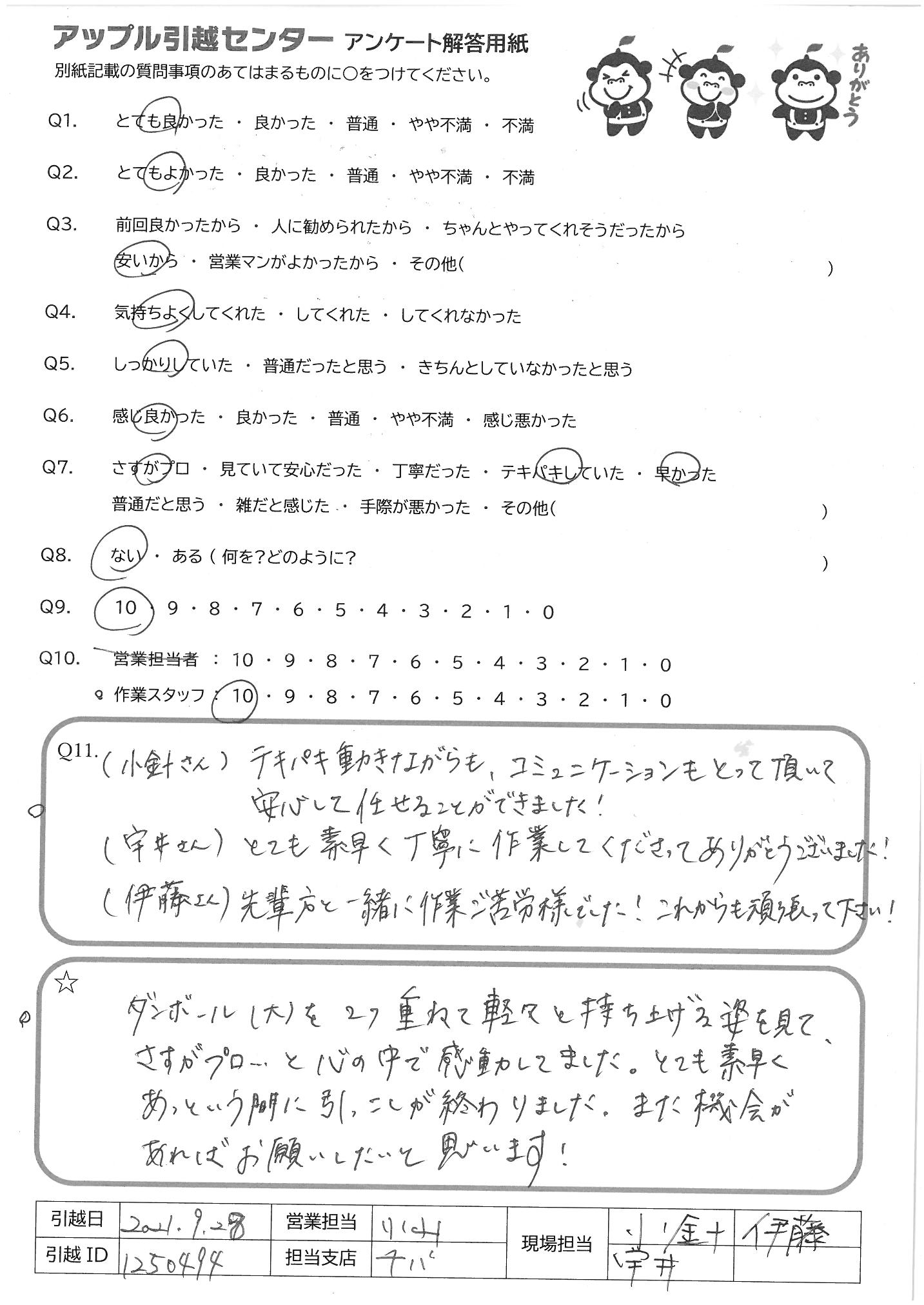 引越し日:2021年09月28日 エリア:千葉県浦安市