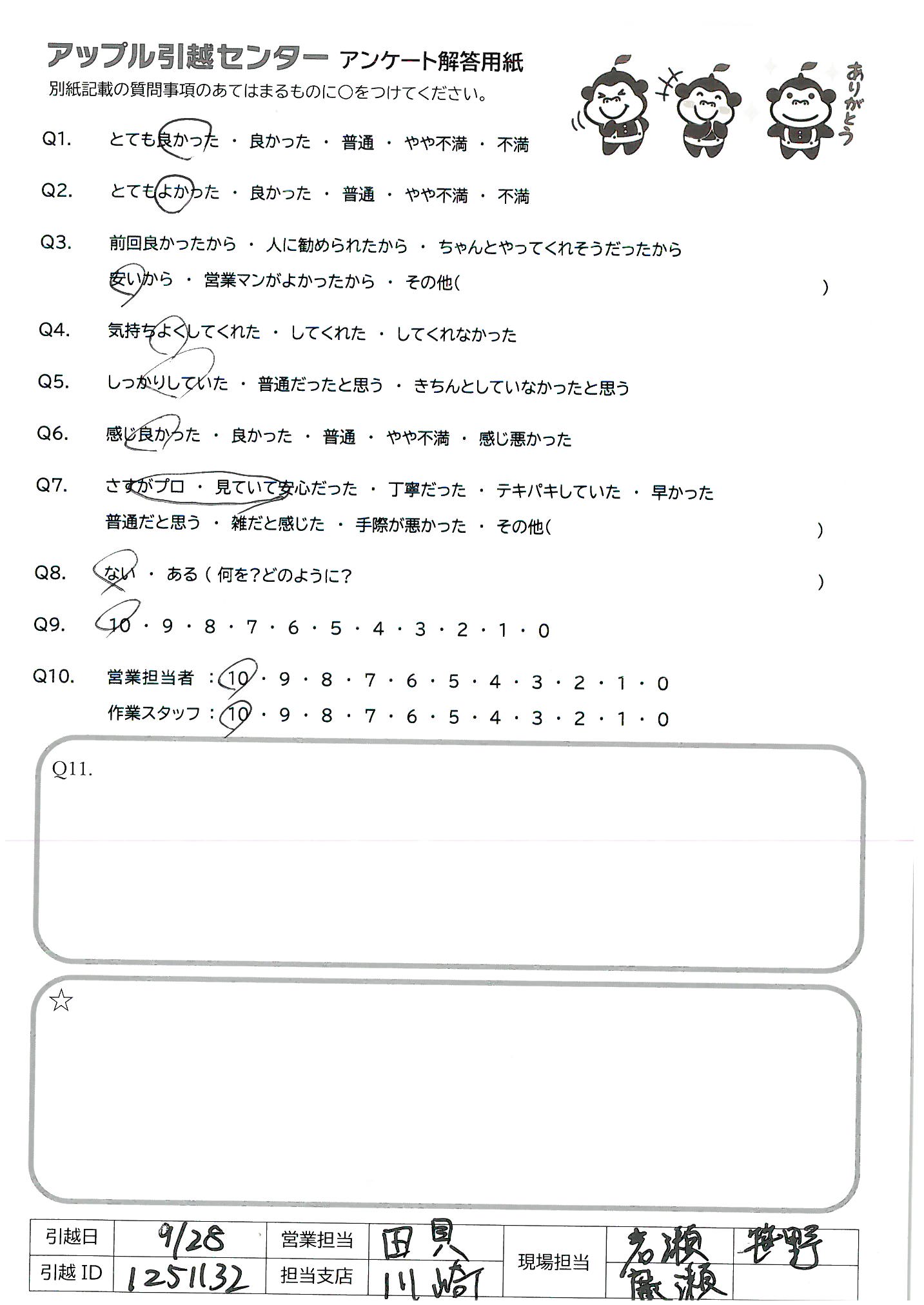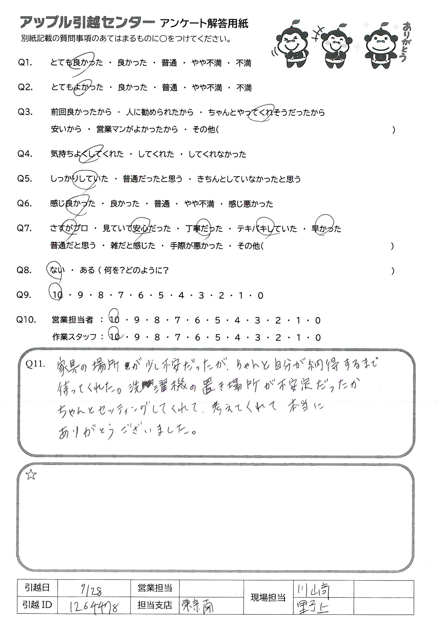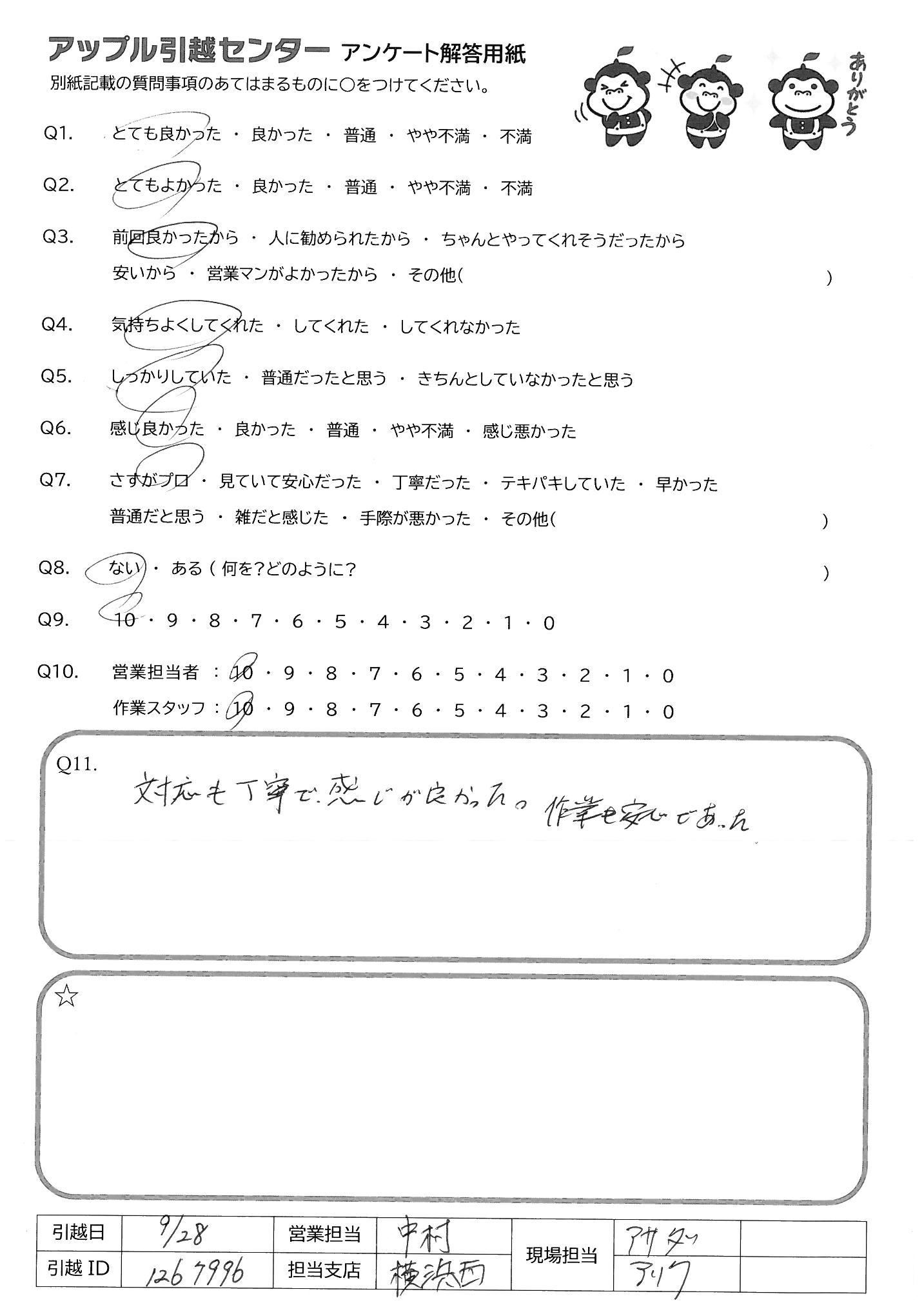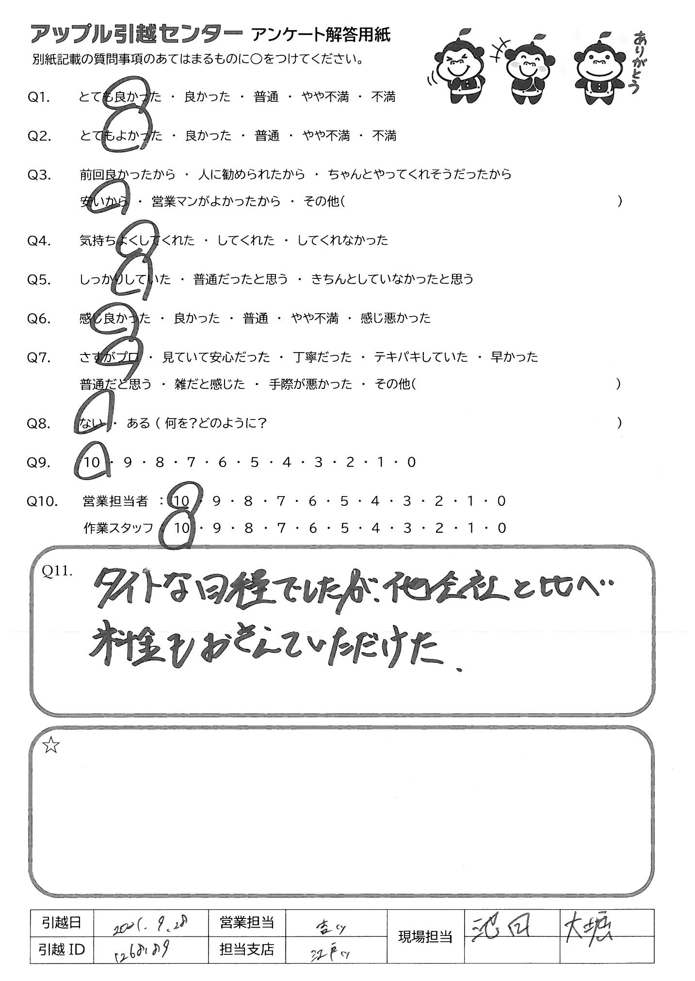 引越し日:2021年09月28日 エリア:神奈川県横浜市港北区