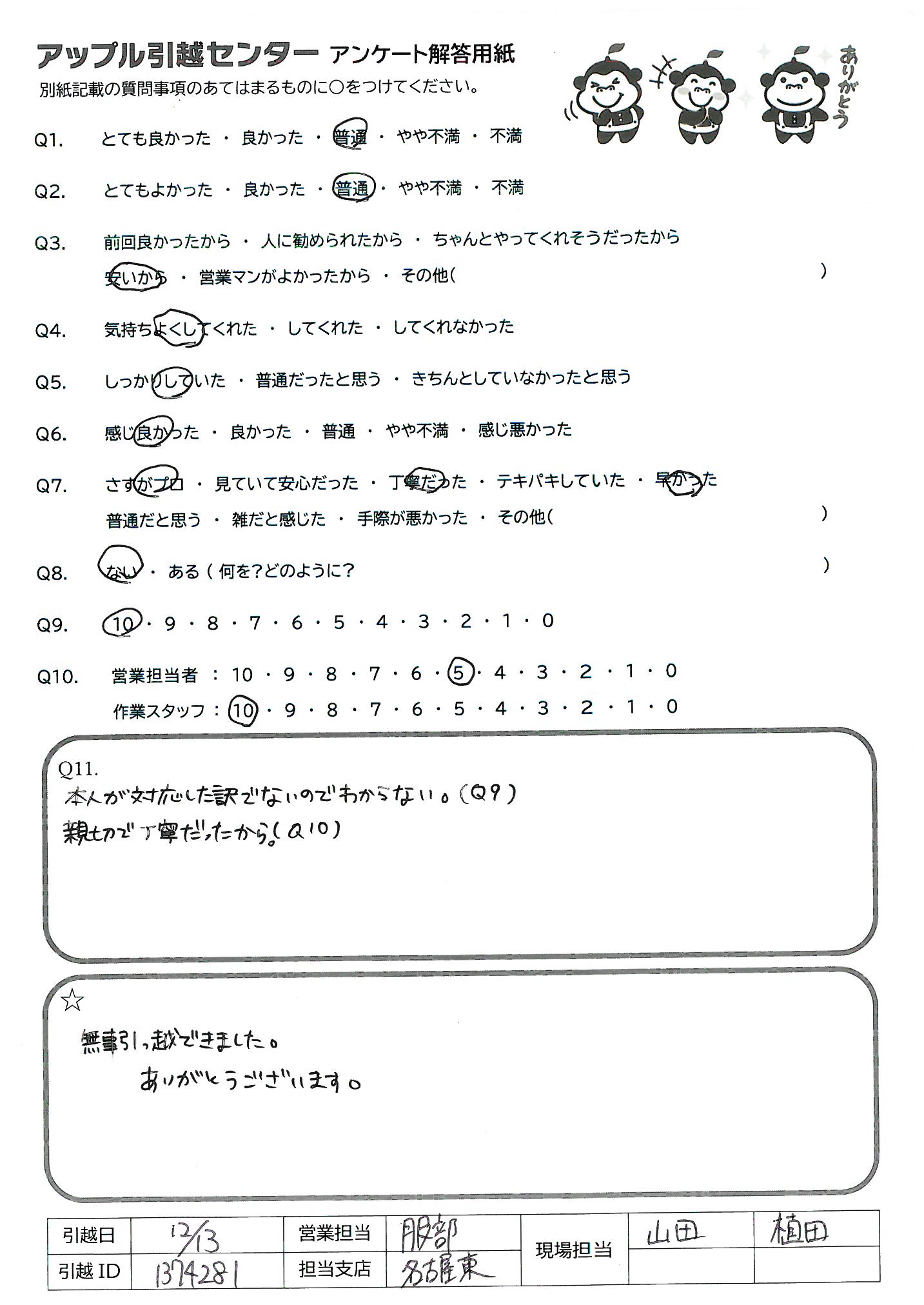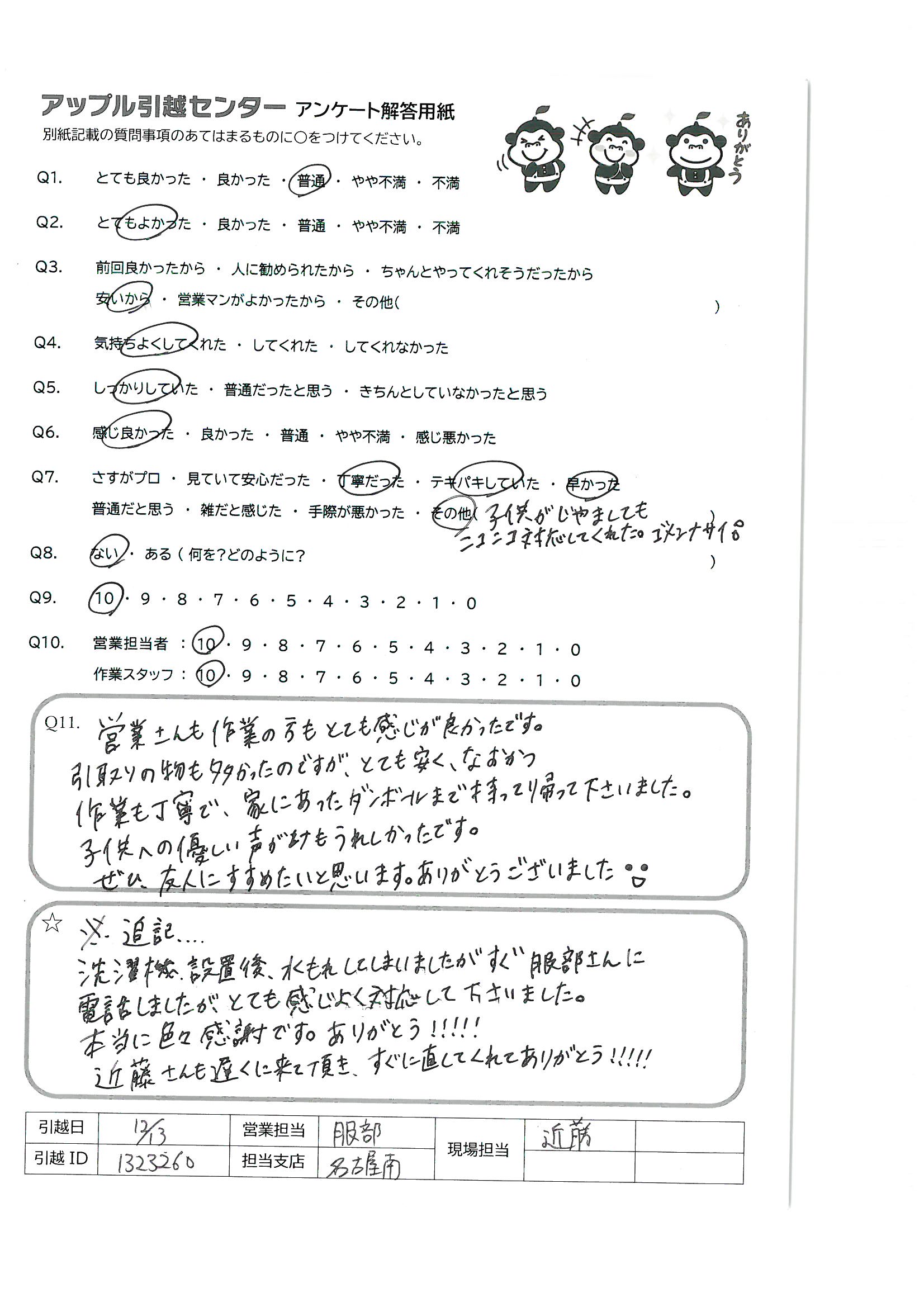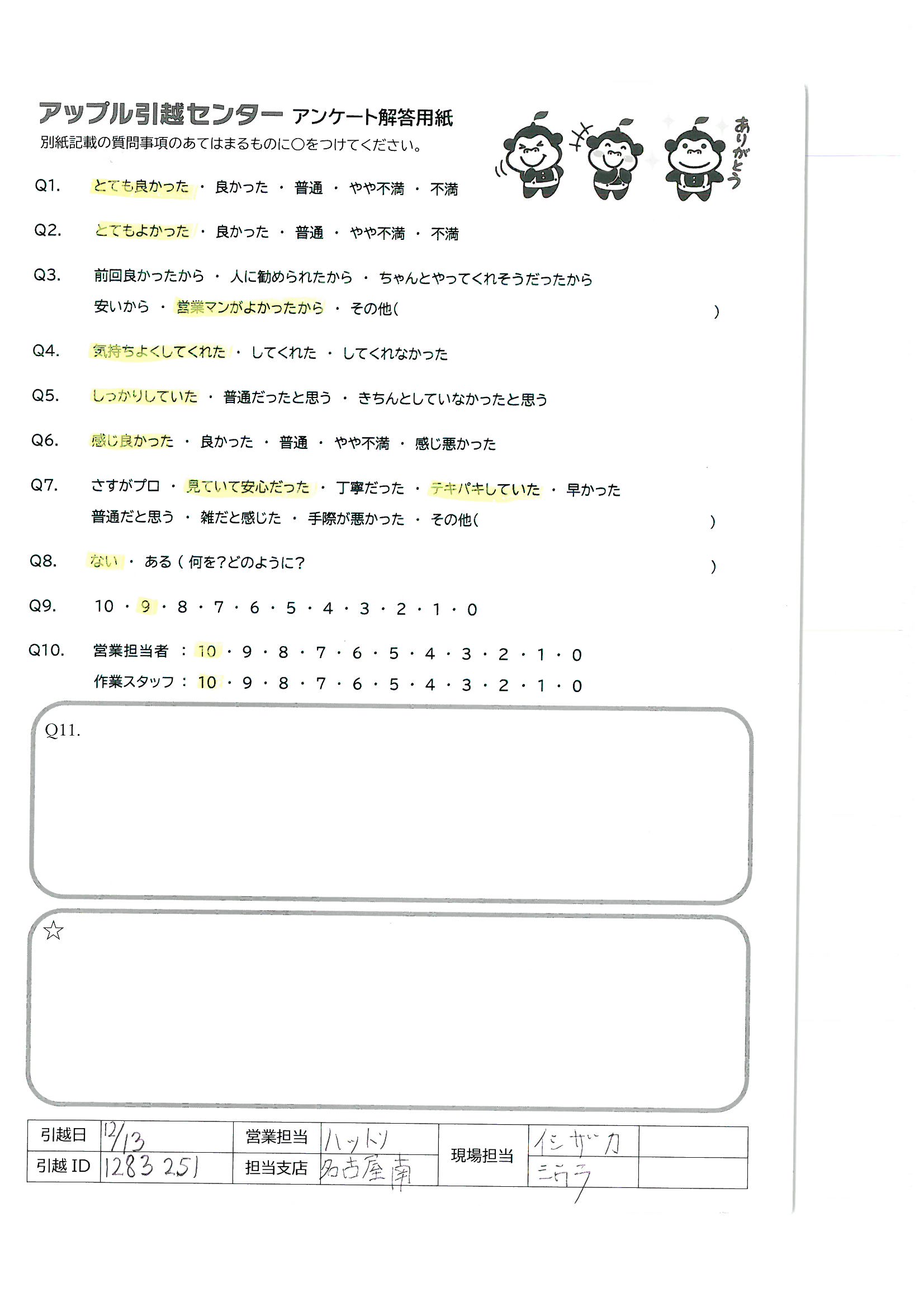 引越し日:2021年12月13日 エリア:愛知県稲沢市