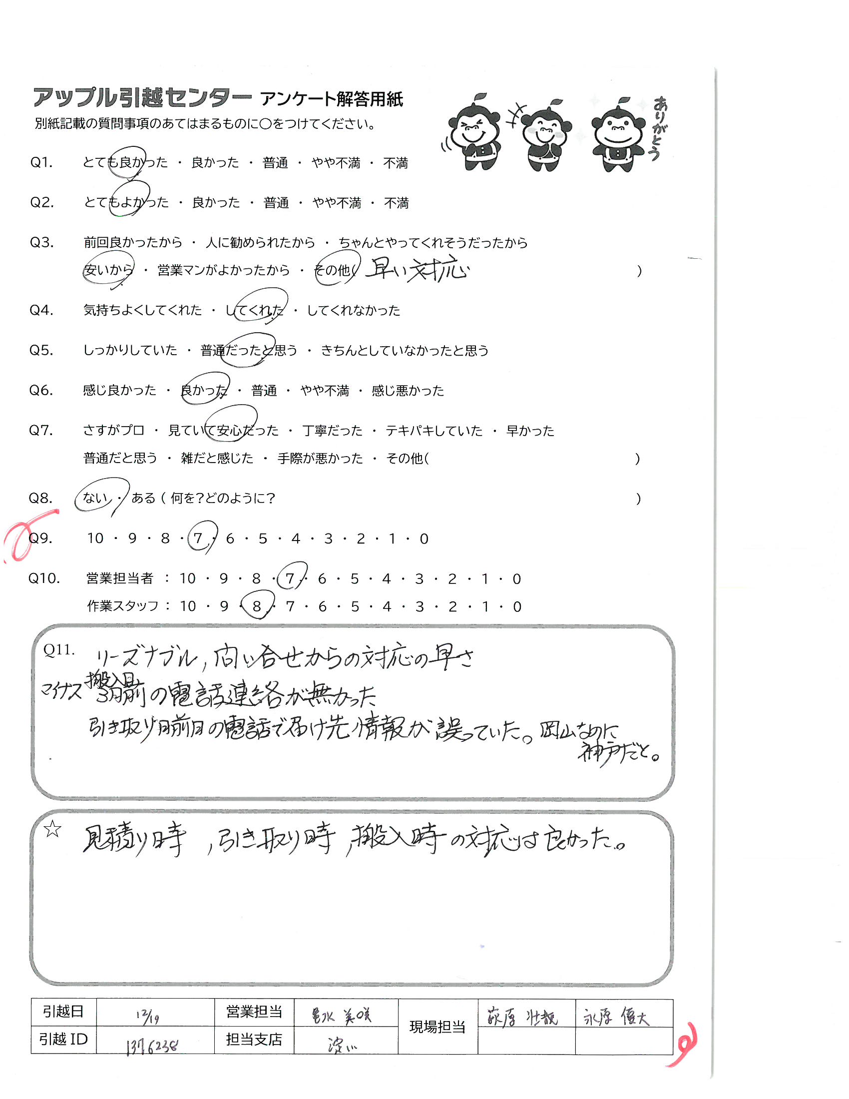 アップル引越センターでは、面映いお褒めの言葉も、胸に突き刺さるお叱りのコメントも、
