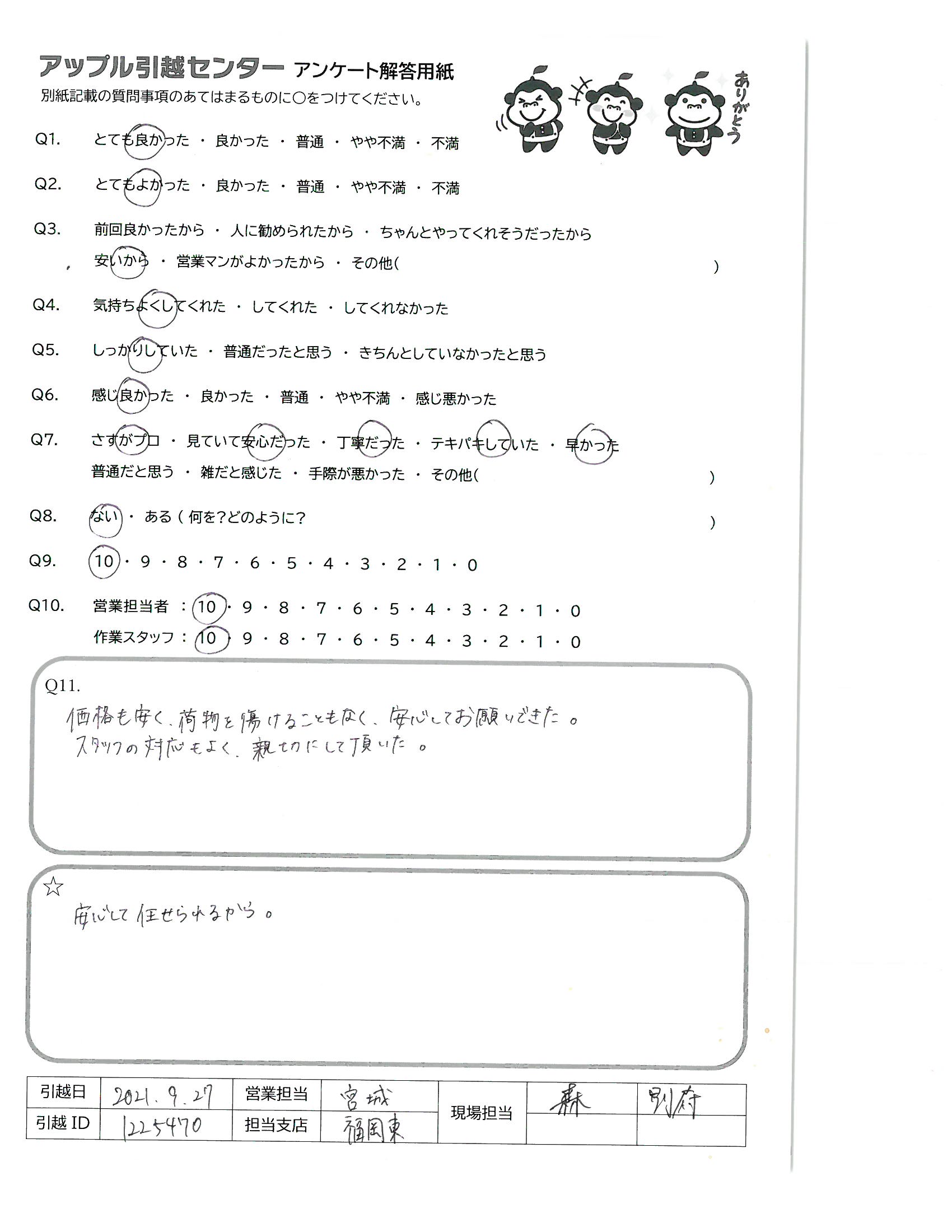 引越し日:2021年09月27日 エリア:福岡県福岡市東区