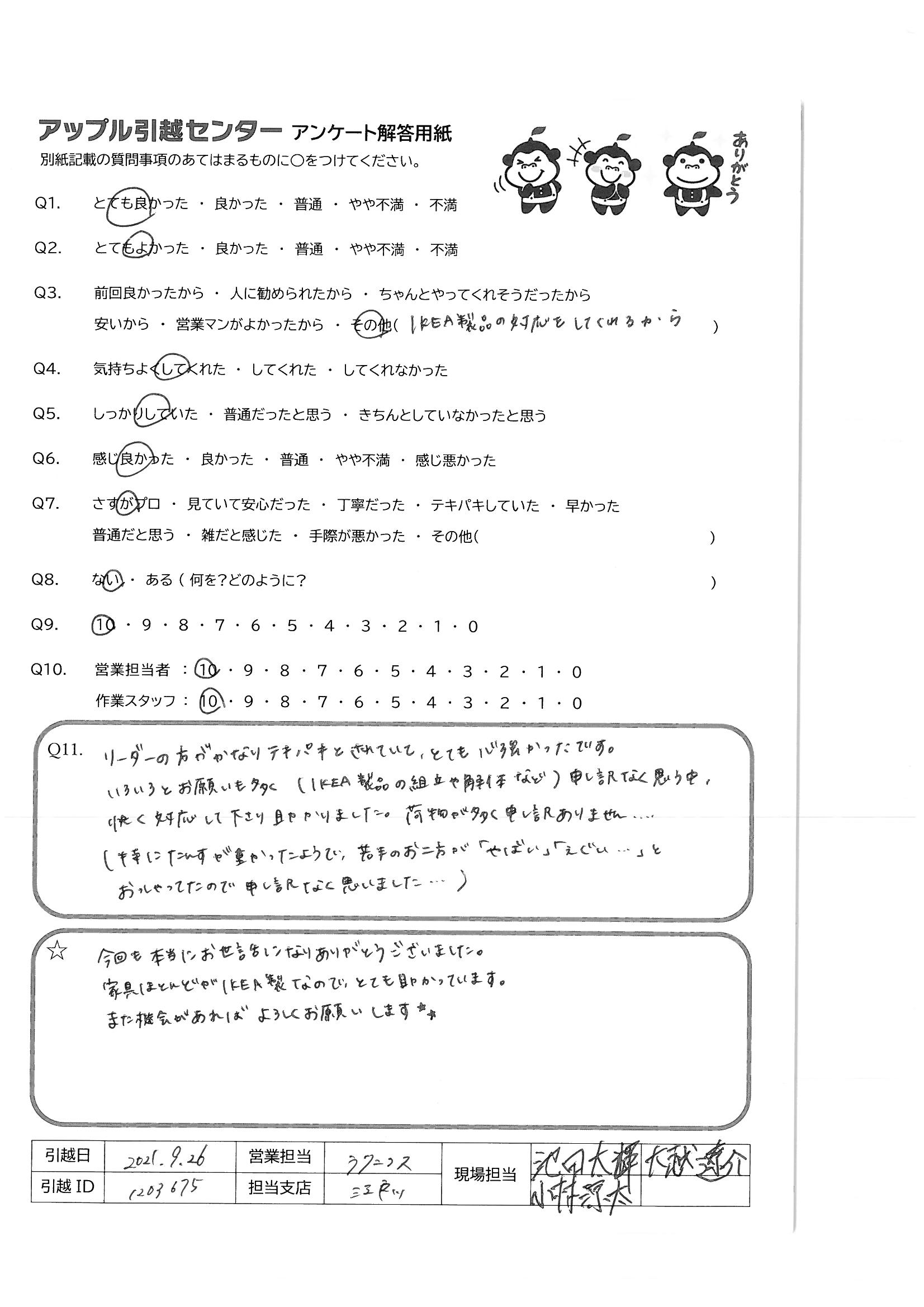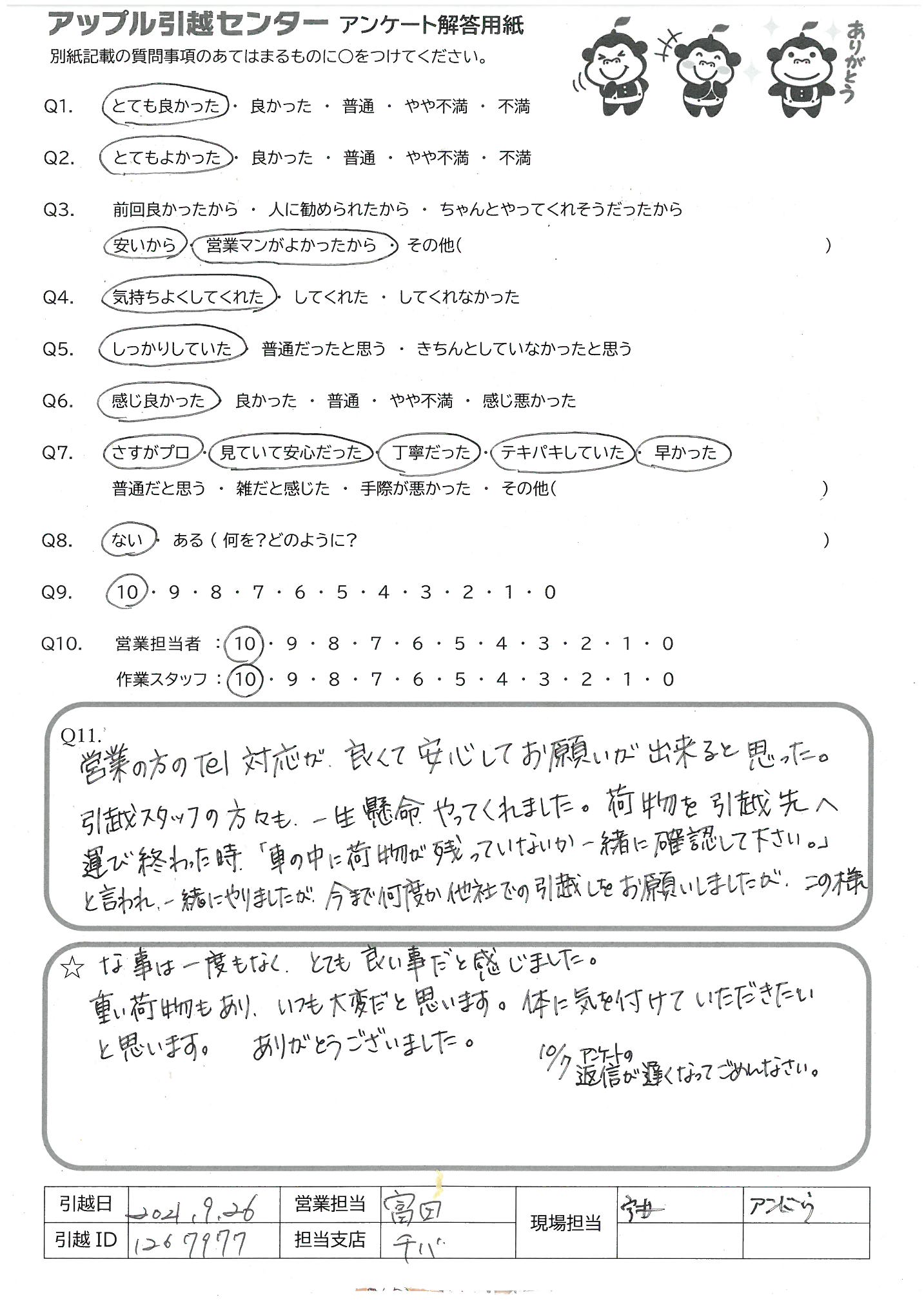 引越し日:2021年09月26日 エリア:千葉県浦安市