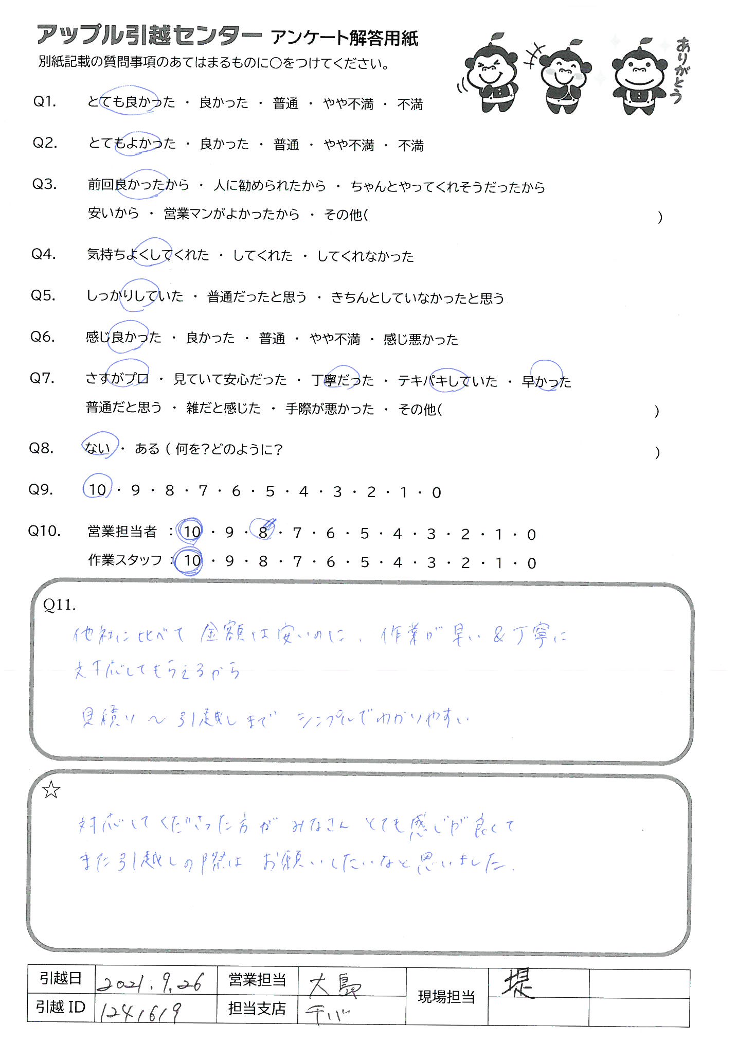 A.ありがとうございました!! また、引っ越すことがありましたら是非宜しくお願いします