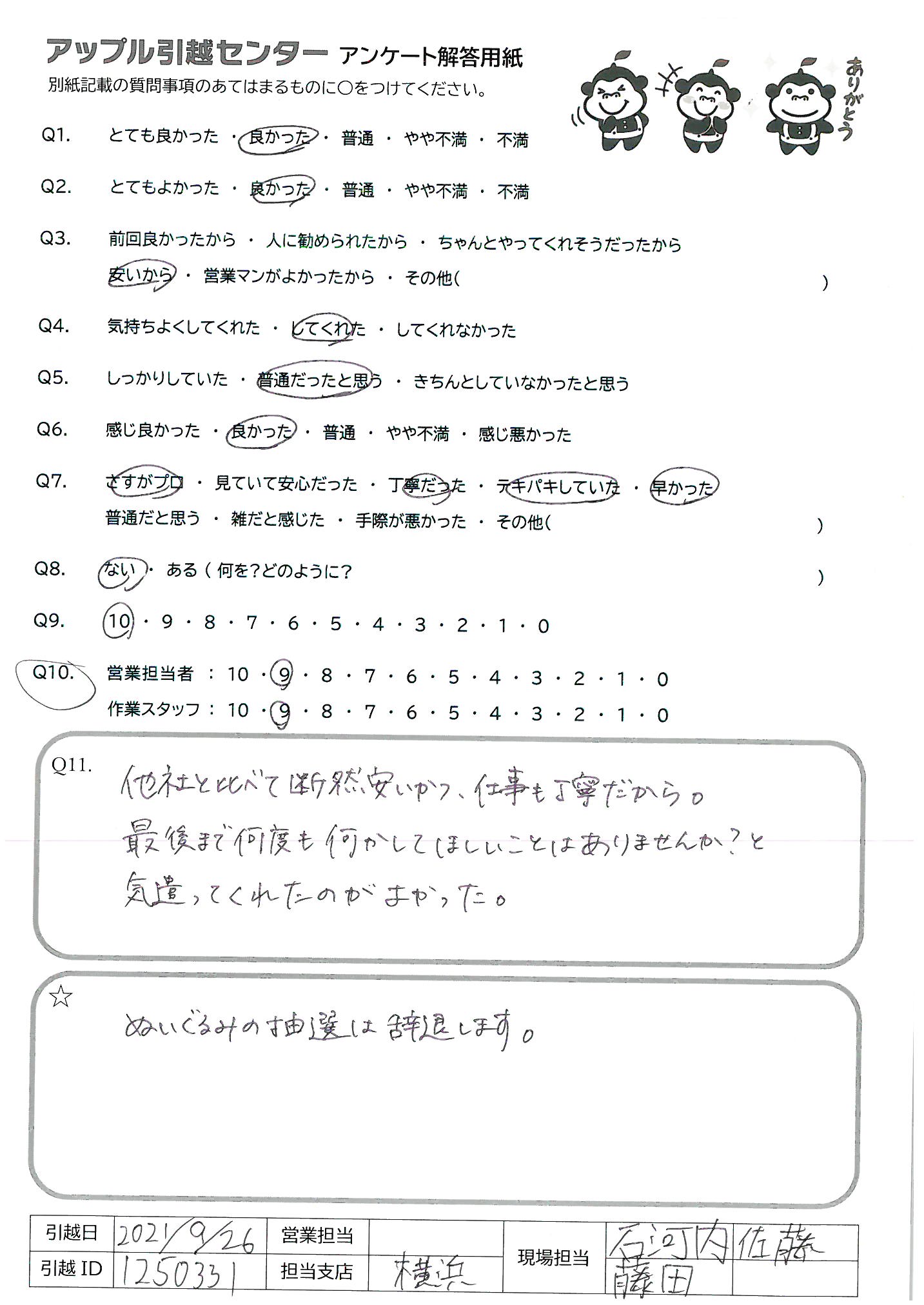 A.対応してくださった方がみなさんとても感じが良くてまた引越しの際はお願いしたいなと思いました。