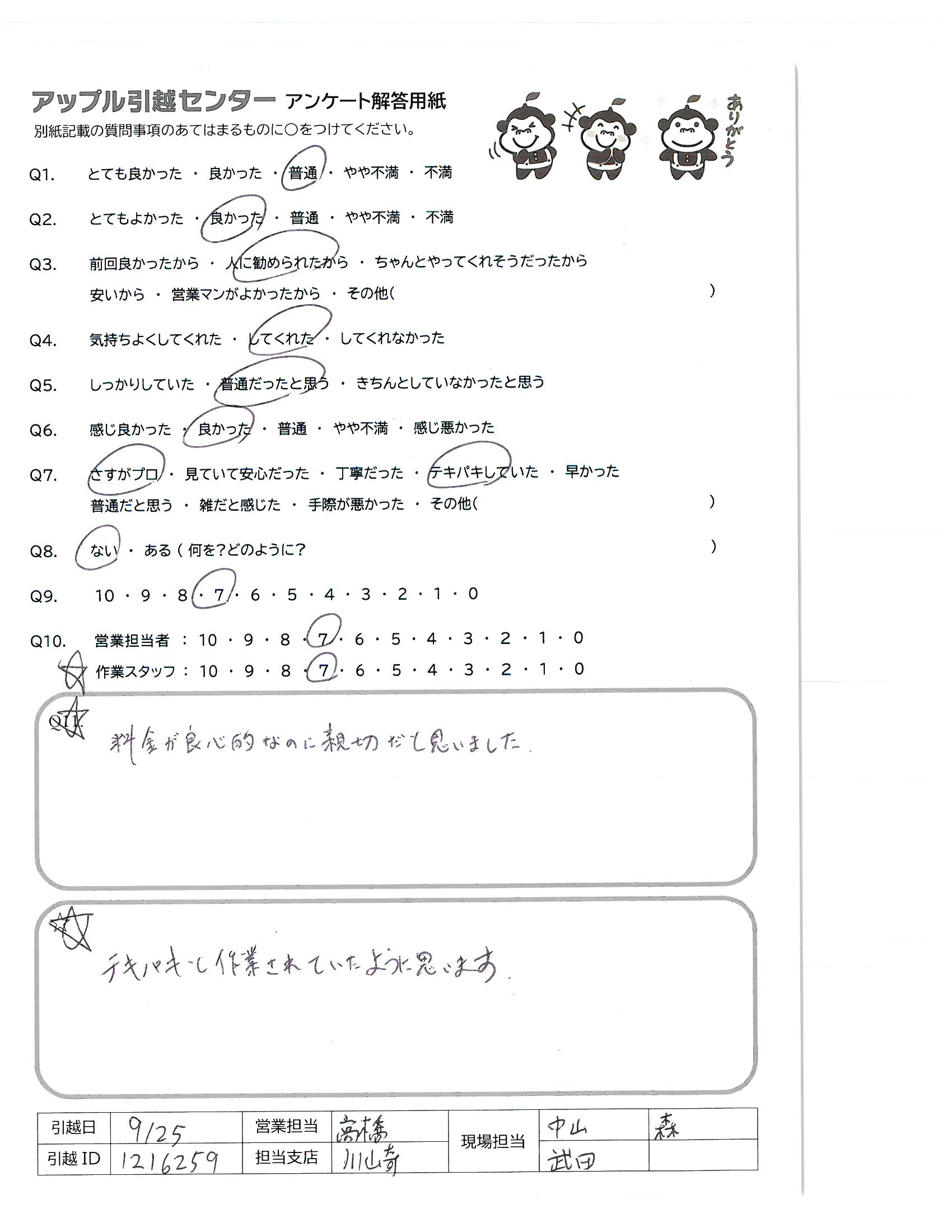 A.とてもテキパキと作業して頂き、感じも大変良かったから