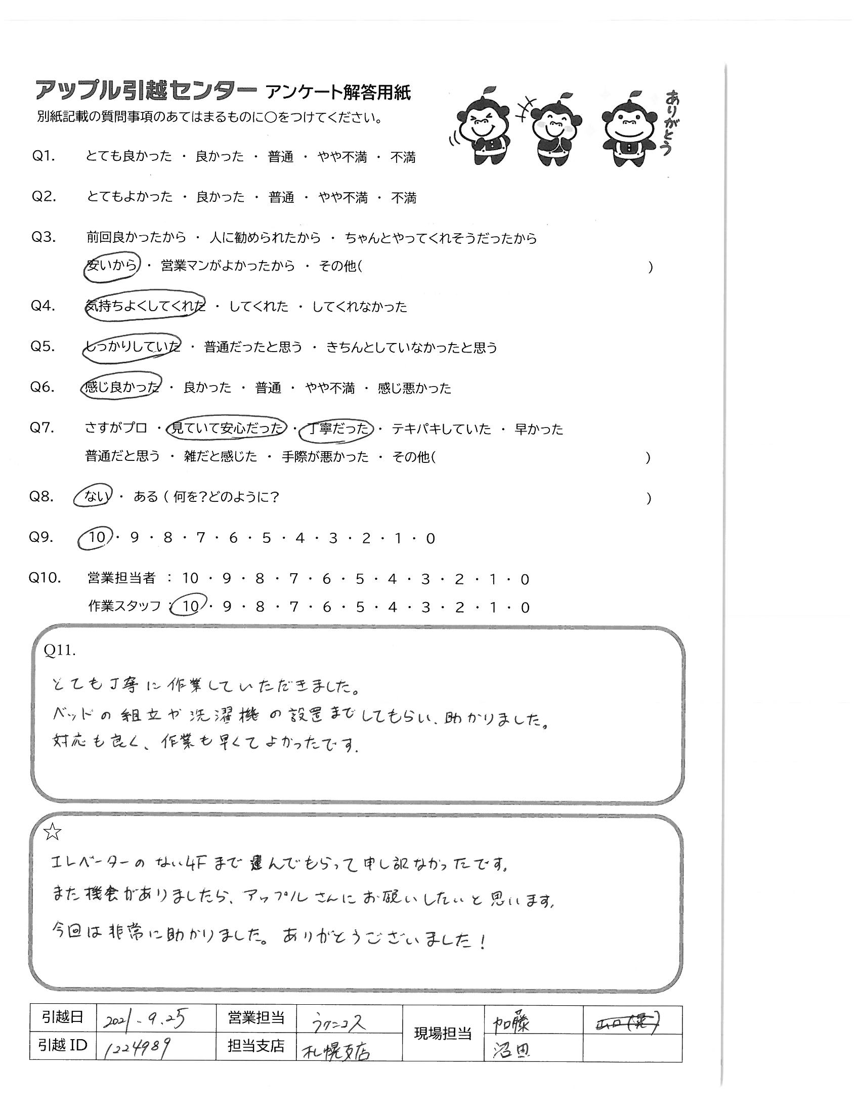 引越し日:2021年09月25日 エリア:北海道札幌市中央区